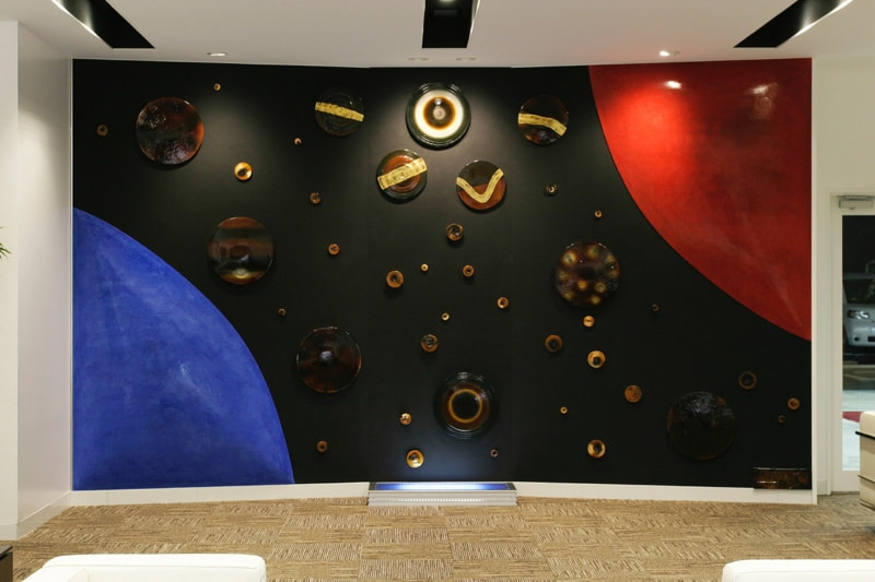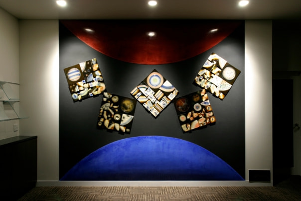 I fashioned the artwork that dots the outer perimeter. I took this idea from the firing process,