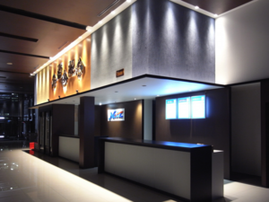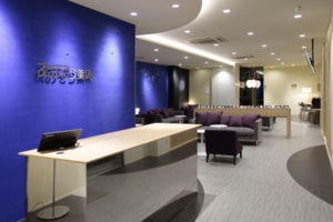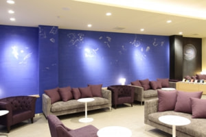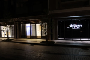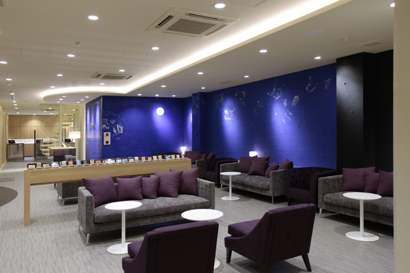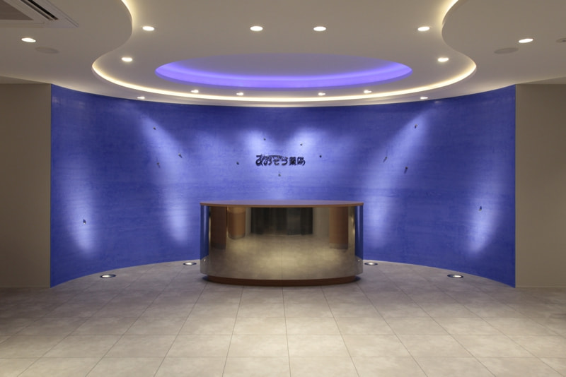 青と黒で構成されたこの空間は、江戸期からの漆喰(しっくい)を用いたもので、