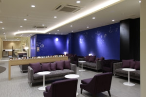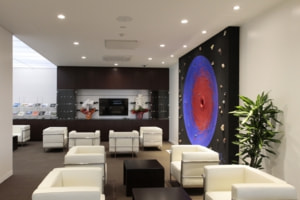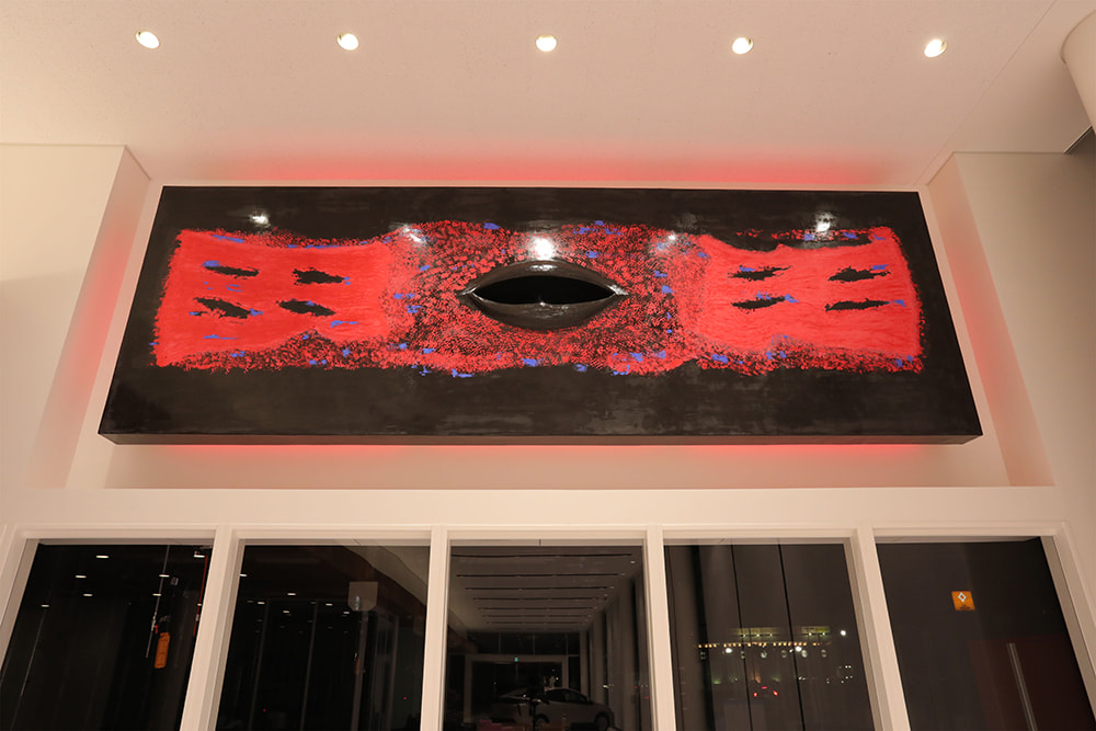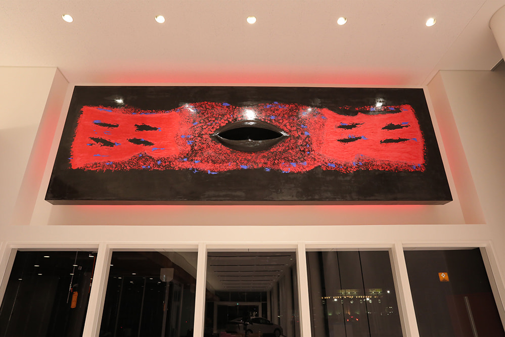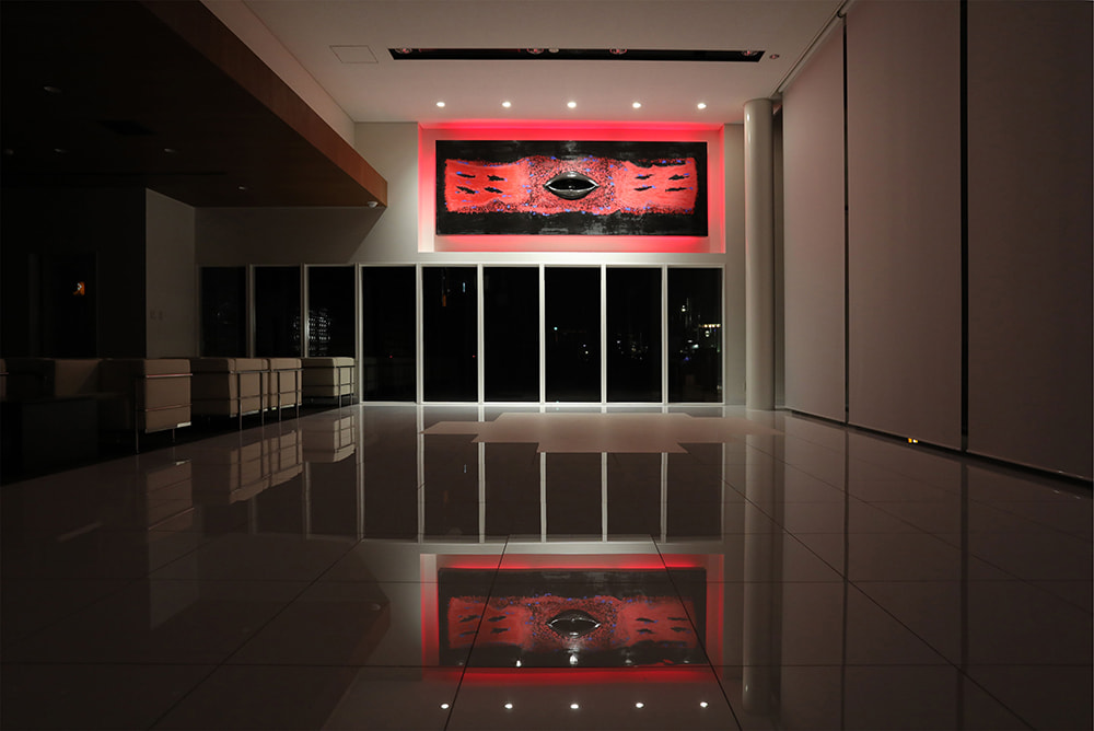This space, composed of blue, black and red, is made from plaster that dates from the Edo period.