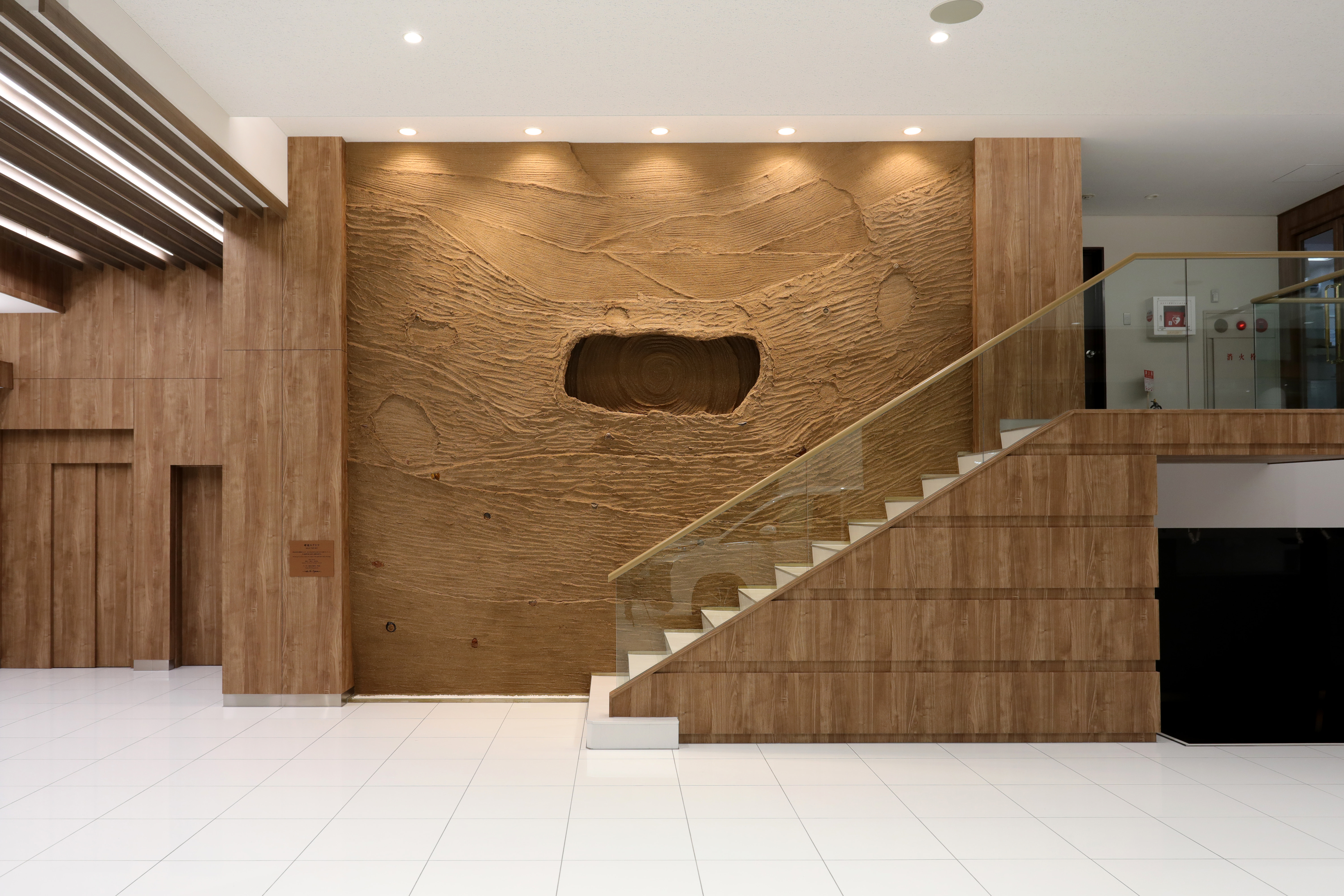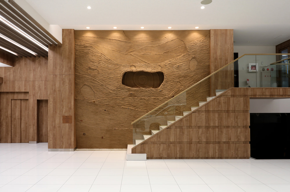 塗り壁は加賀左官の伝統技術を用いた。その職人の匠を応用しながら現代の空間を構成した。
