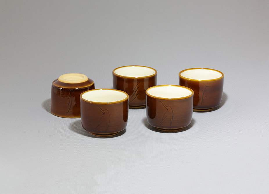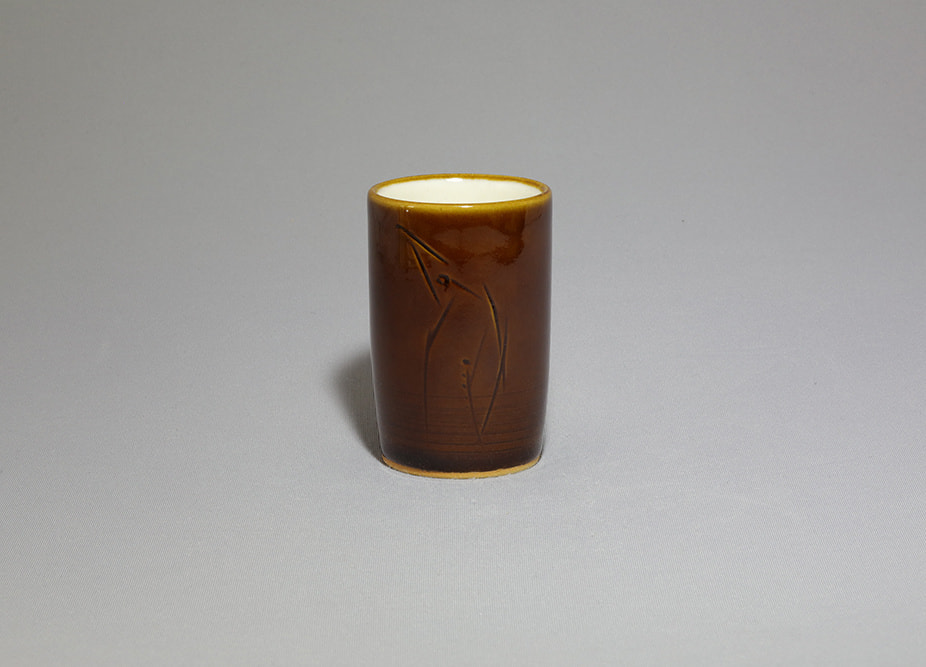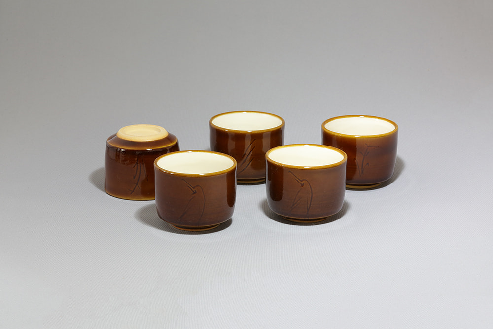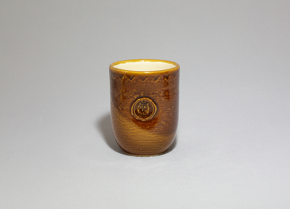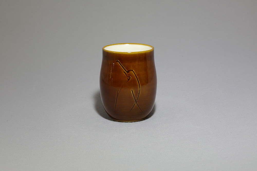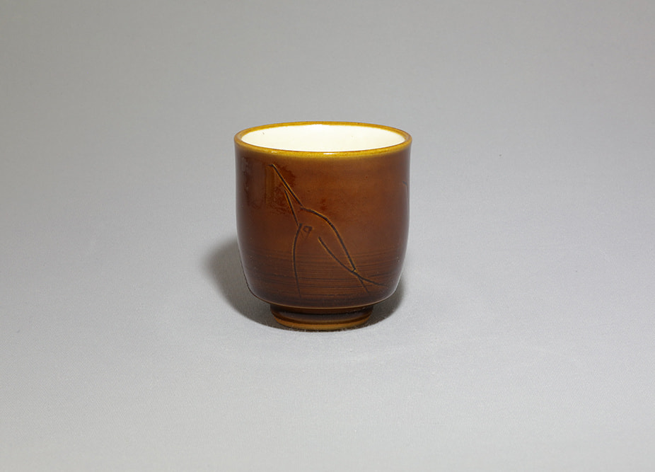 No.1001 飴釉鳥紋湯呑(小) Amber Ohi Tea Cup, with Pattern of Bird, Small