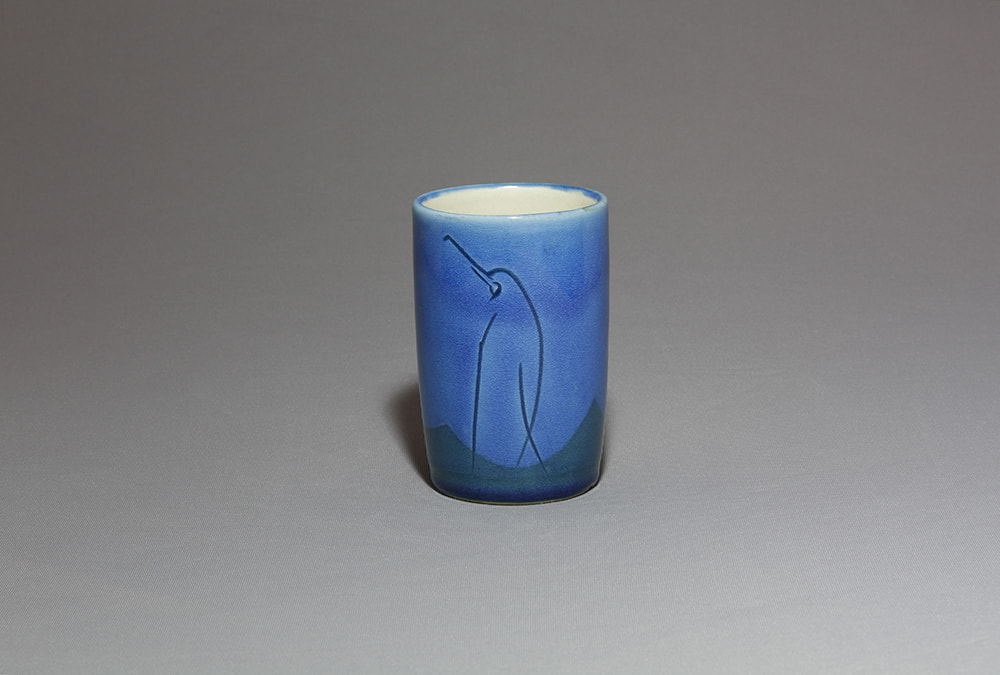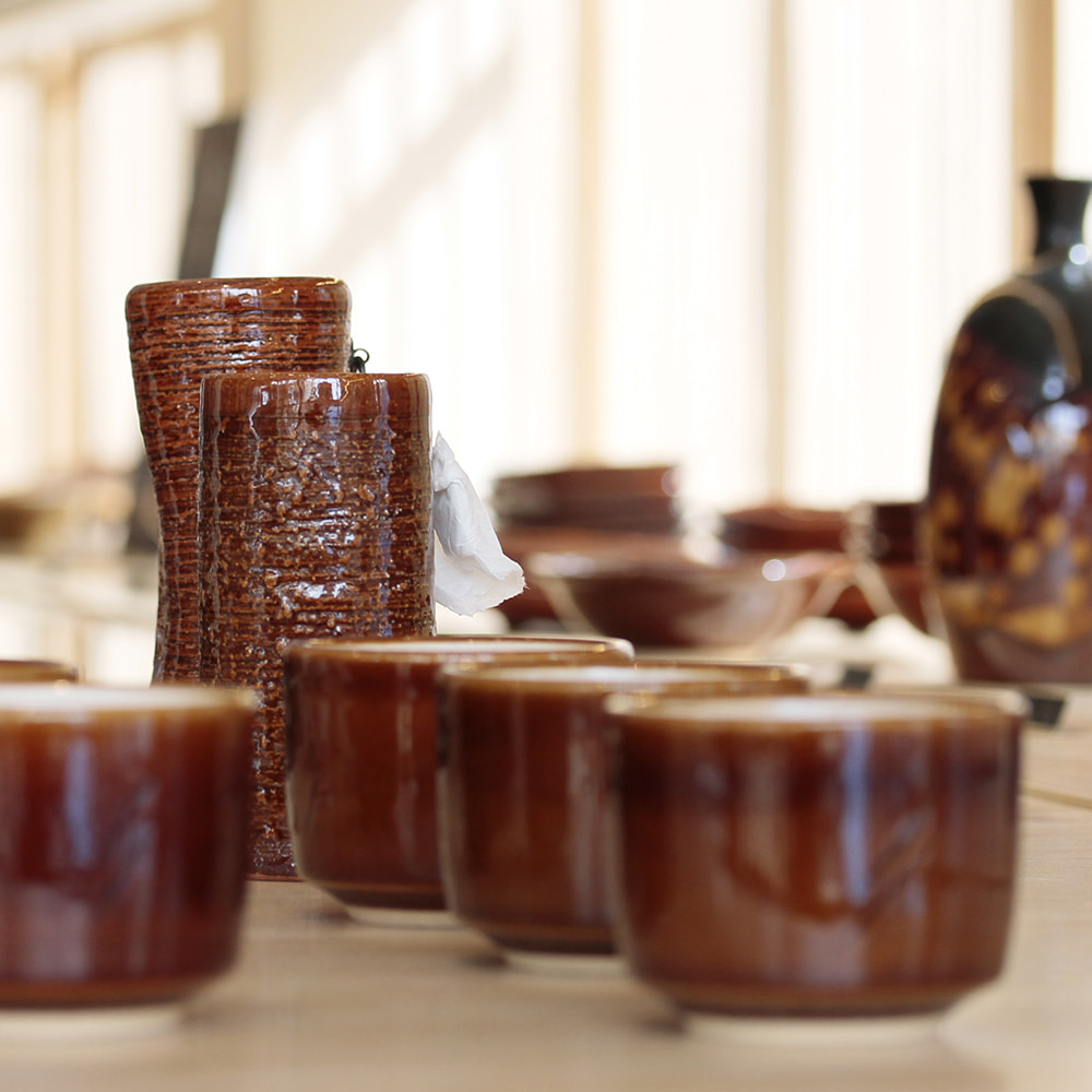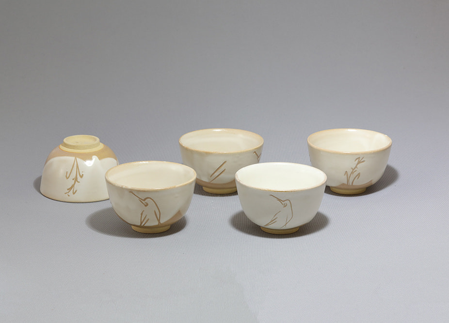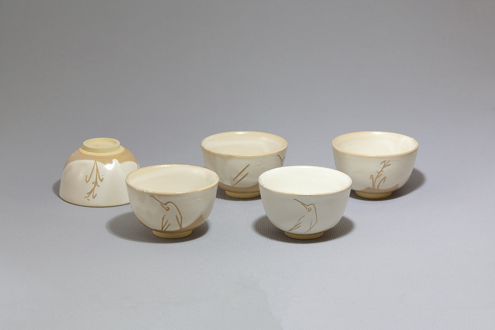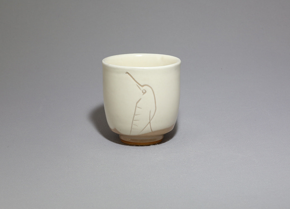 No.1001 飴釉鳥紋湯呑(小) Amber Ohi Tea Cup, with Pattern of Bird, Small