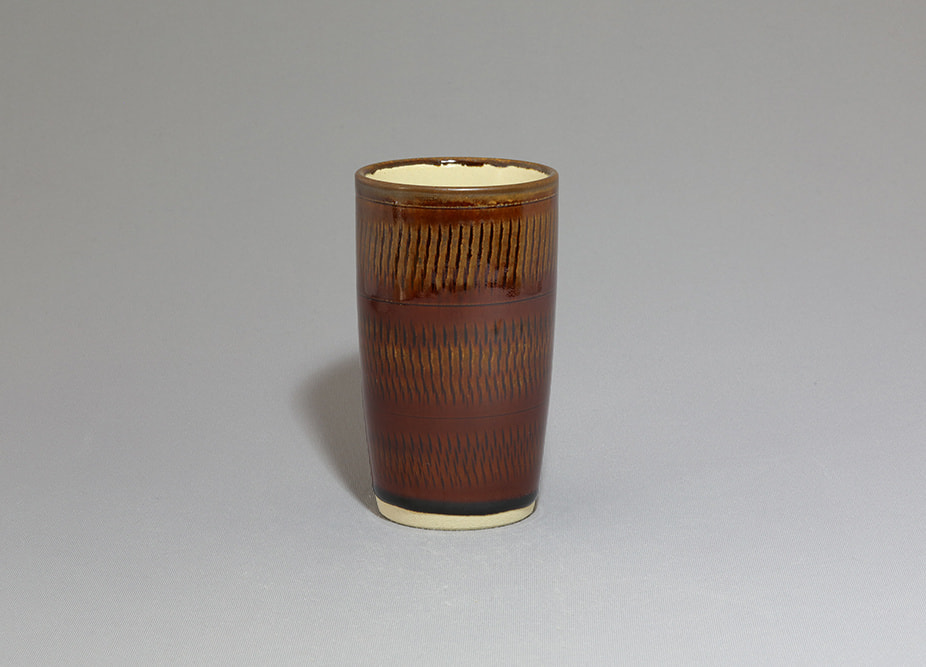 No.1038 大樋飴釉縦長湯呑(線紋) Amber Ohi Tea Cup with Line Pattern