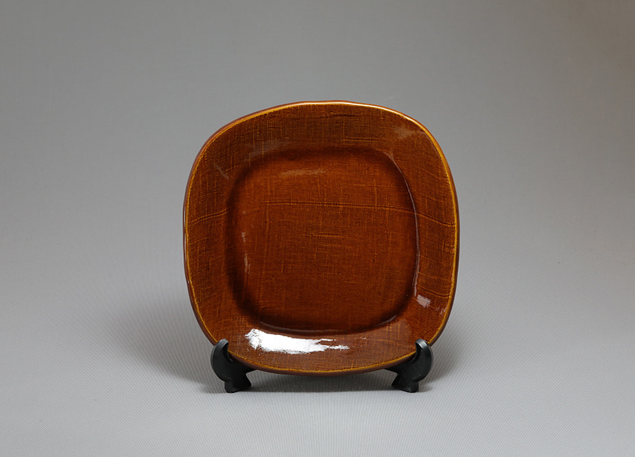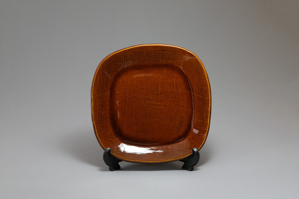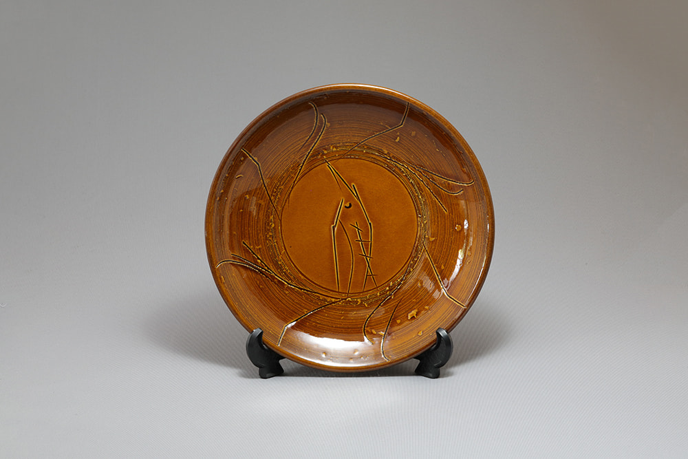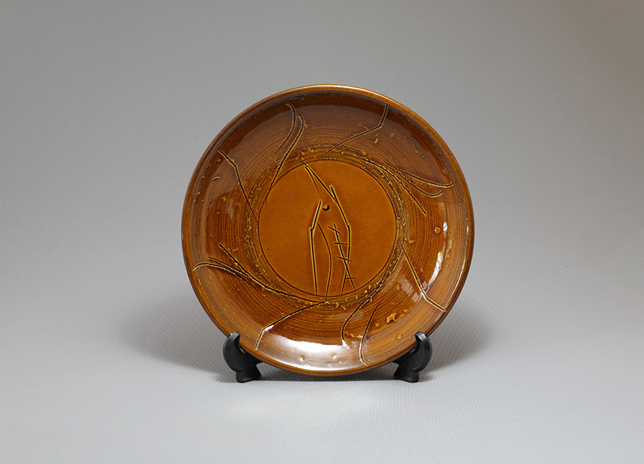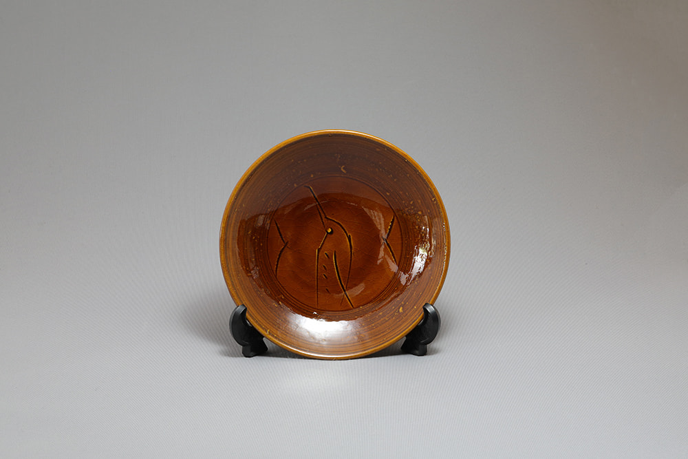 No.1101 飴釉鳥紋皿(小) Amber Ohi Plate with Pattern of Bird, Small