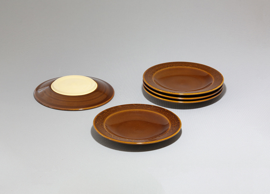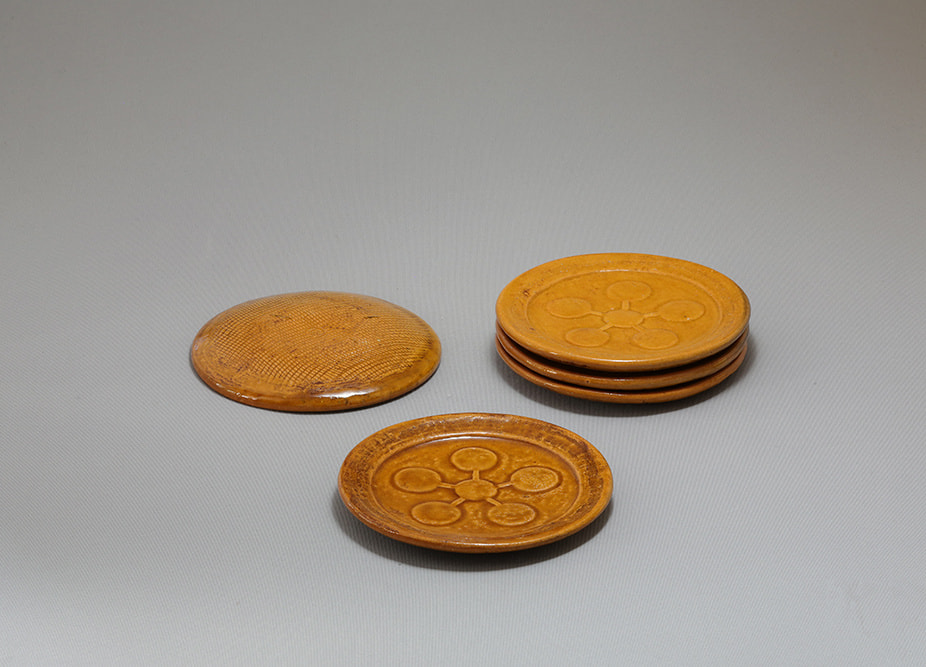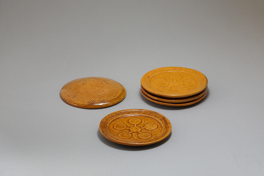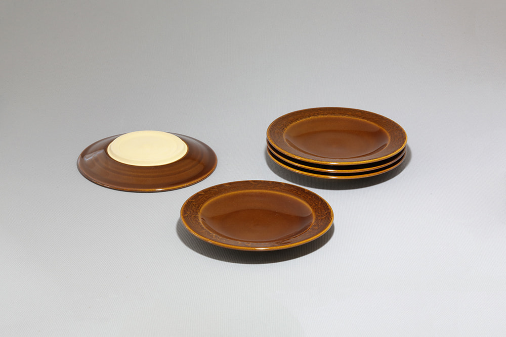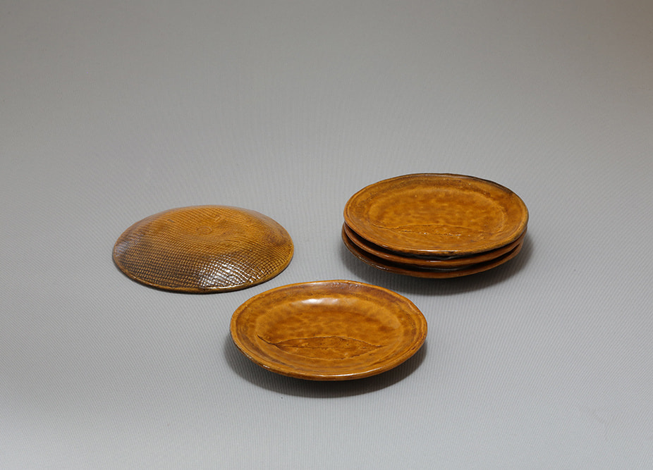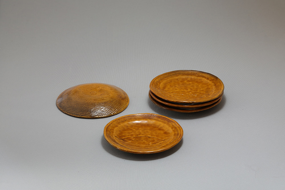 No.1101 飴釉鳥紋皿(小) Amber Ohi Plate with Pattern of Bird, Small
