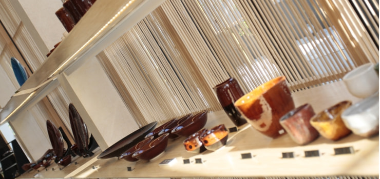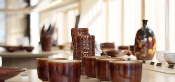 The Ohi gallery which displays work by both the 10th generation Ohi Chozaemon and his eldest son Toshio 11th generation, together have selected new proposal work for the Ohi Museum’s current exhibition.