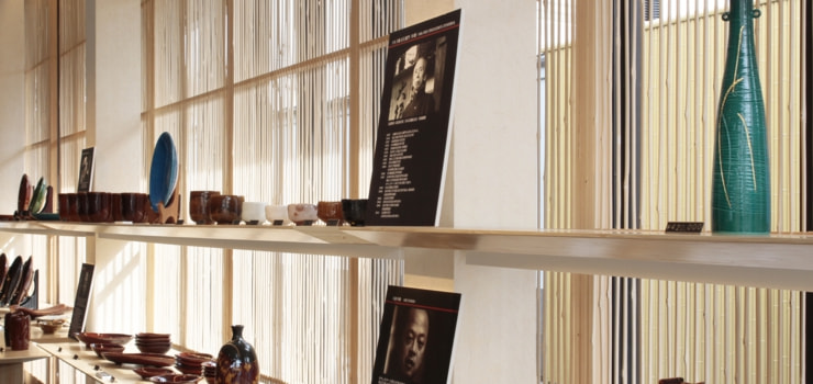 2014年春 武家屋敷(金沢市指定保存建造物)である当家は建築家・隈研吾氏の設計、木村ふみ氏コーディネートによるギャラリー、茶室などが新築されました。大樋ギャラリーでは、大樋陶冶斎と十一代大樋長左衛門(年雄)が制作した作品、また両者のプロデュースによる(大樋セレクション)新たな提案が展示されています。また、茶室「年々庵」(裏千家鵬雲斎大宗匠命名)では、歴代茶盌で抹茶を喫することもできます(有料)