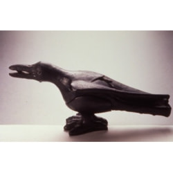 烏をかたどった香炉。胸部を境にして蓋と身に分かれ、背には煙り出しの穴がうがたれている。烏の鳴く瞬間を見事に表現しており、表情溢れる目や嘴のつくりに初代長左衛門の彫塑的な手腕があらわれている。大きさ、黒い色、量感など、なんと素晴らしい造形だろう。