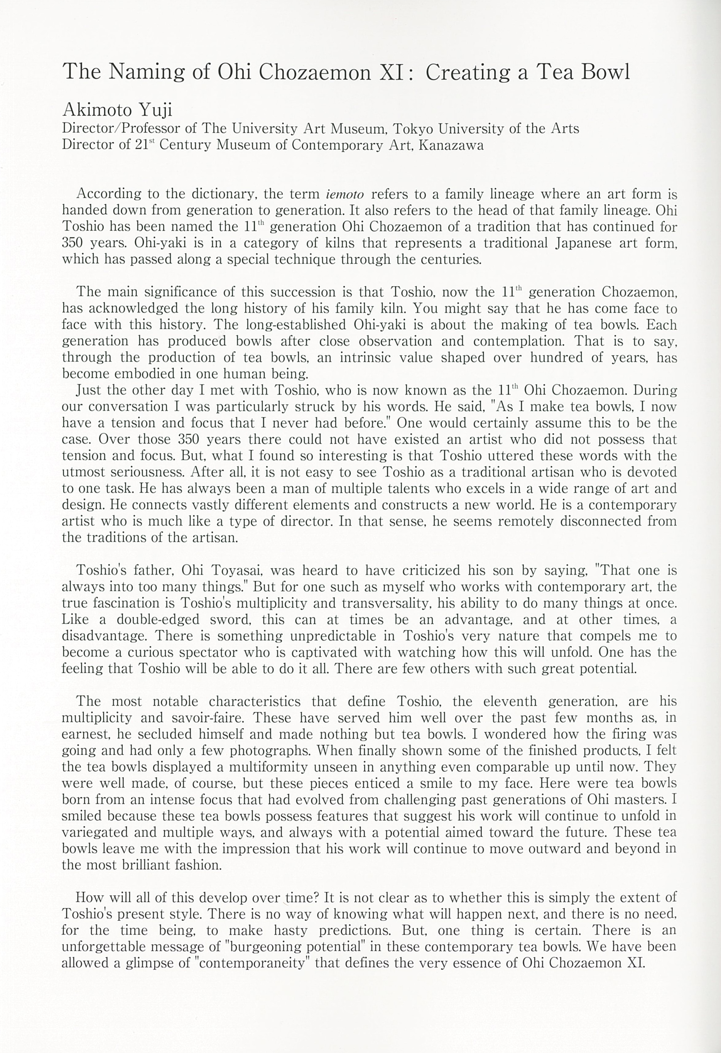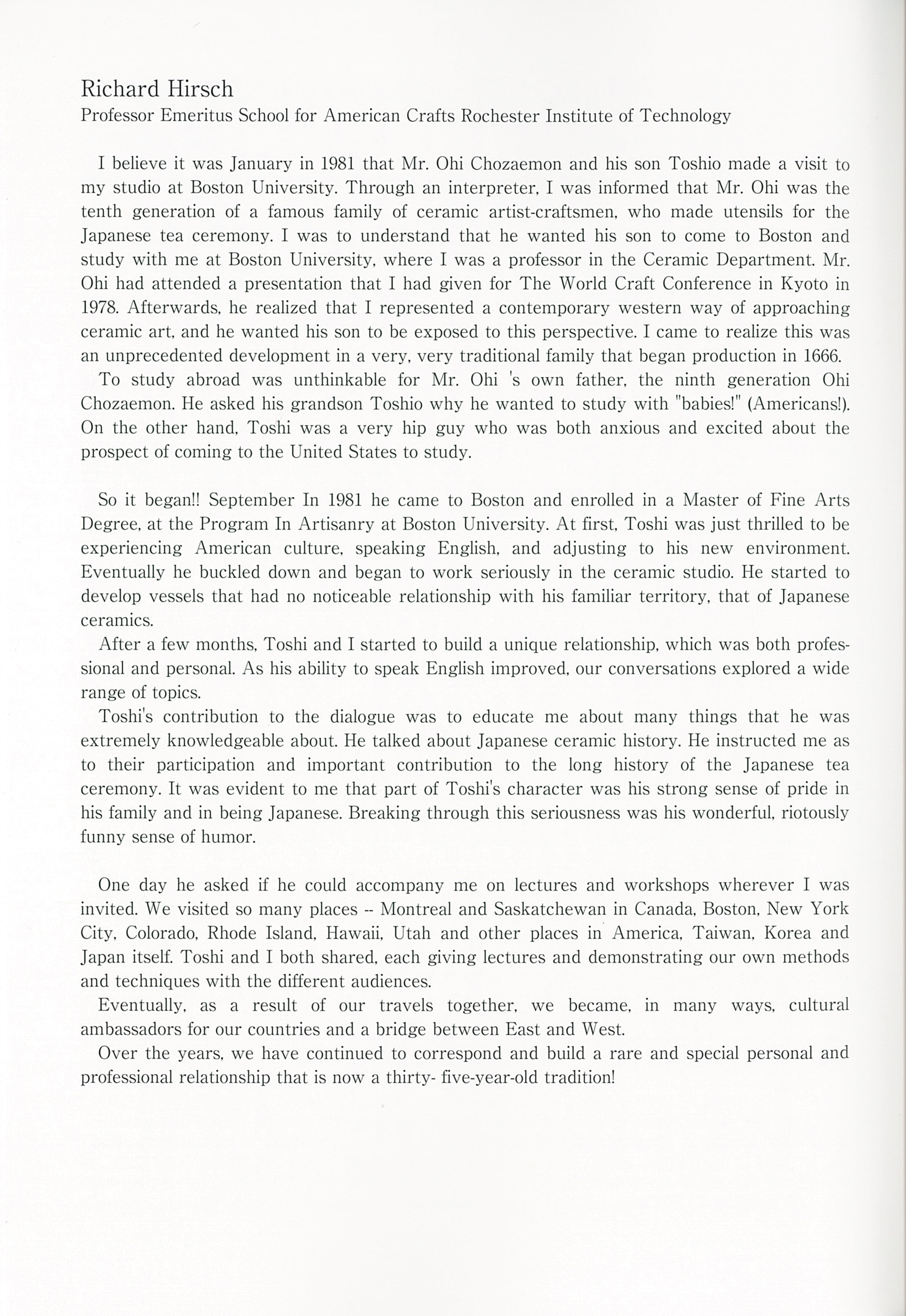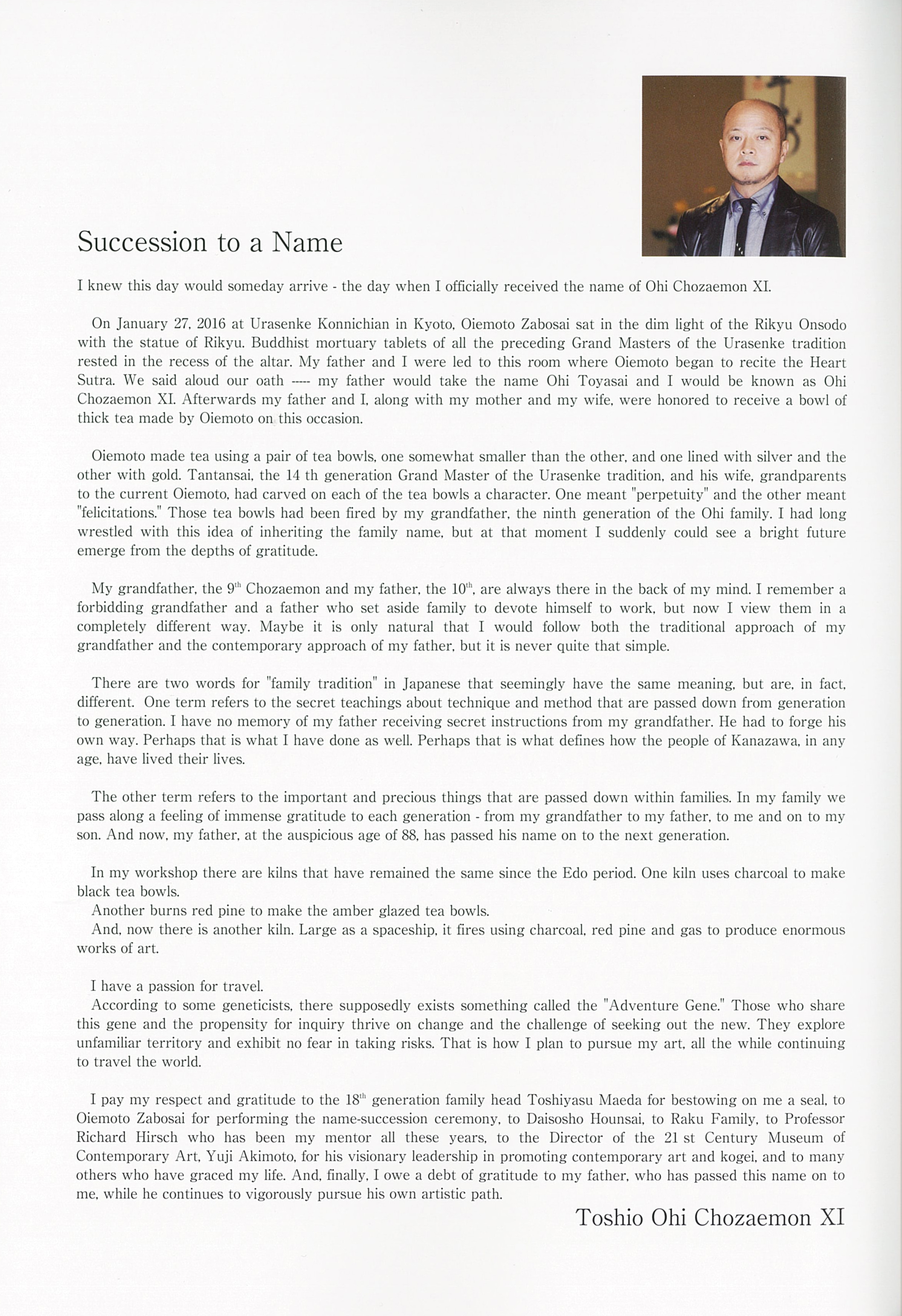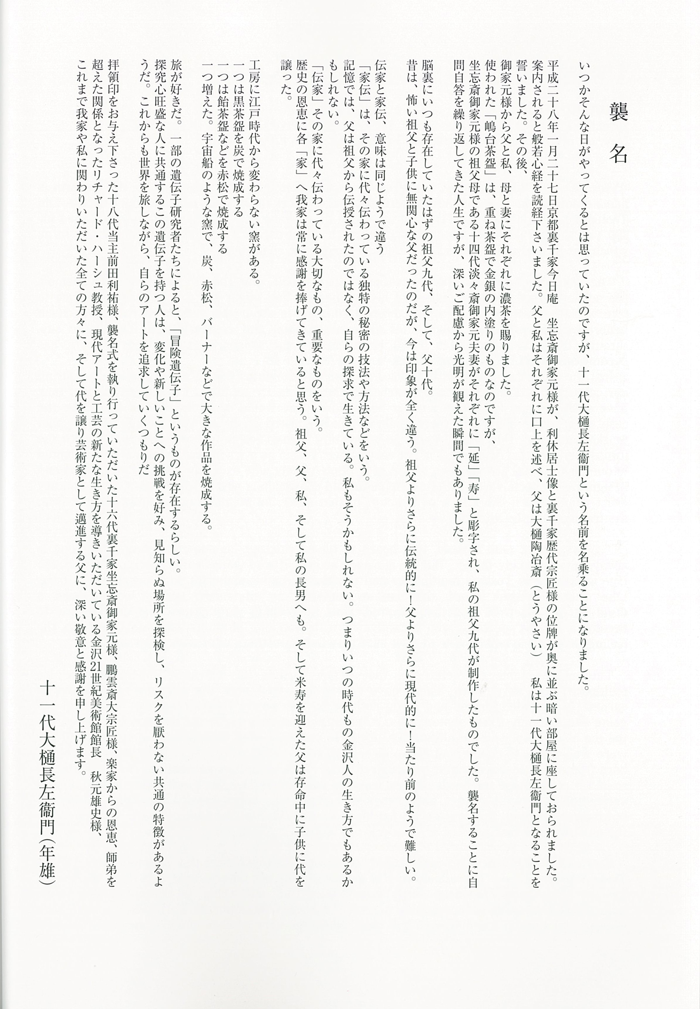 大和様 前田家十八代当主 前田利祐様 Mr. Maeda Toshiyasu, 18th リチャード ハーシュ様 Mr. Richard Hirsch 秋元雄史様 Mr. Akimoto Yuji 十一代大樋長左衛門 Ohi Chozaemon XI ページトップへ