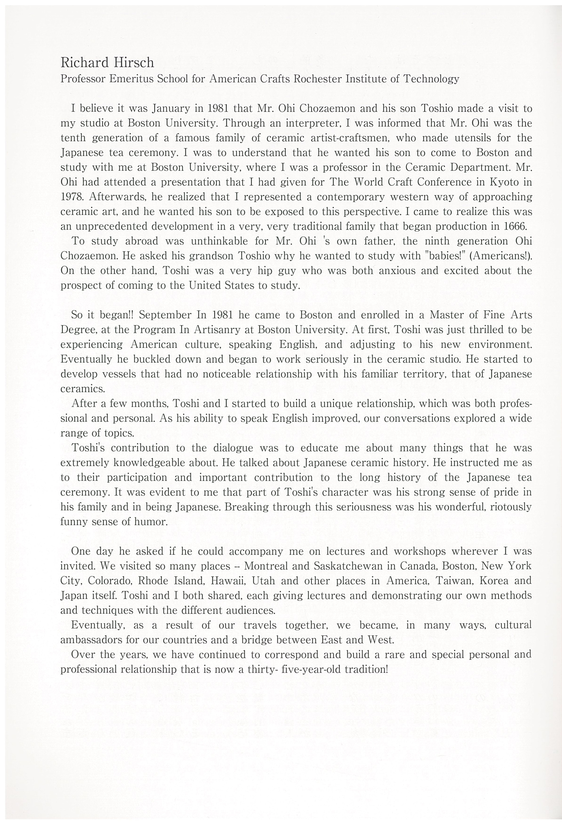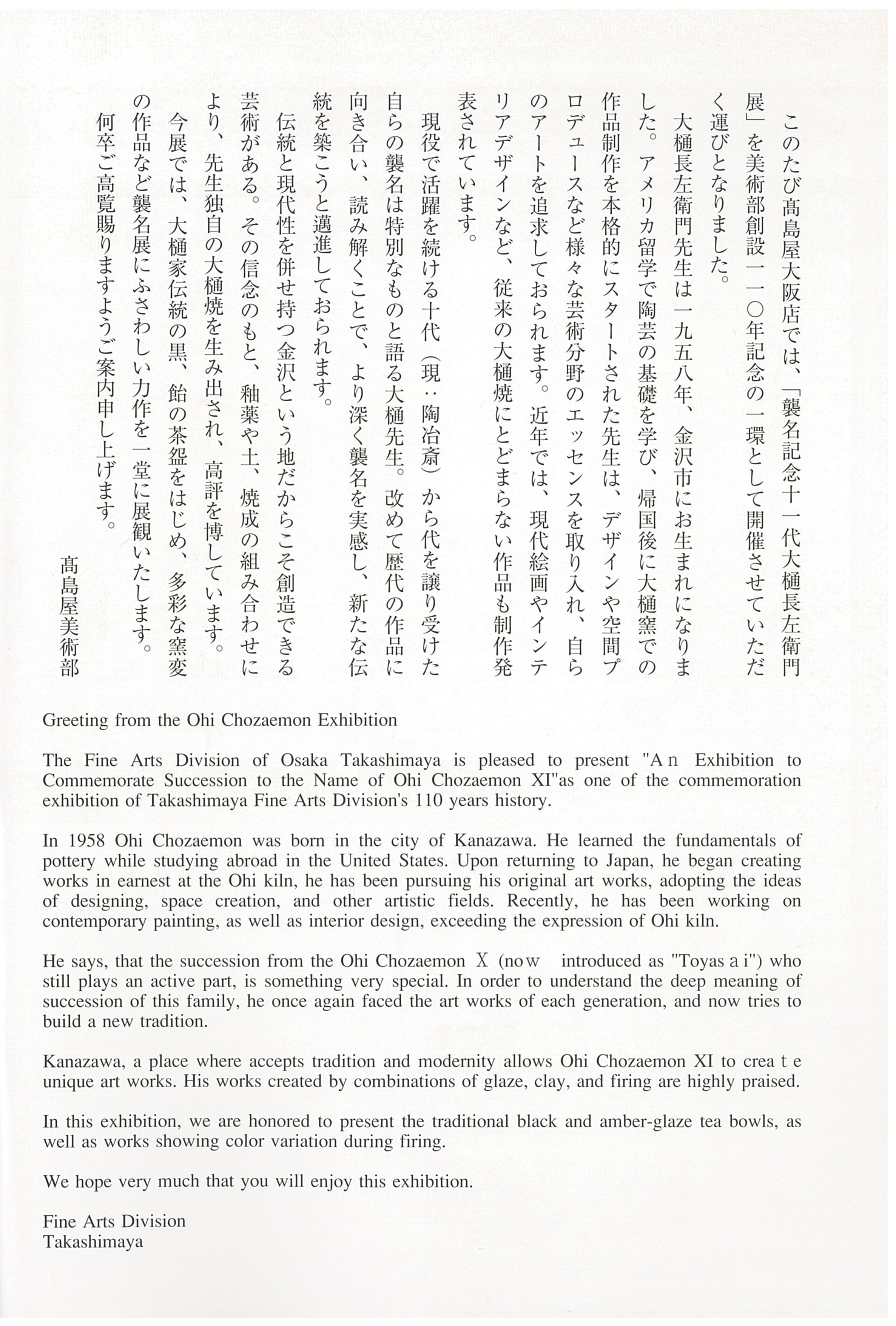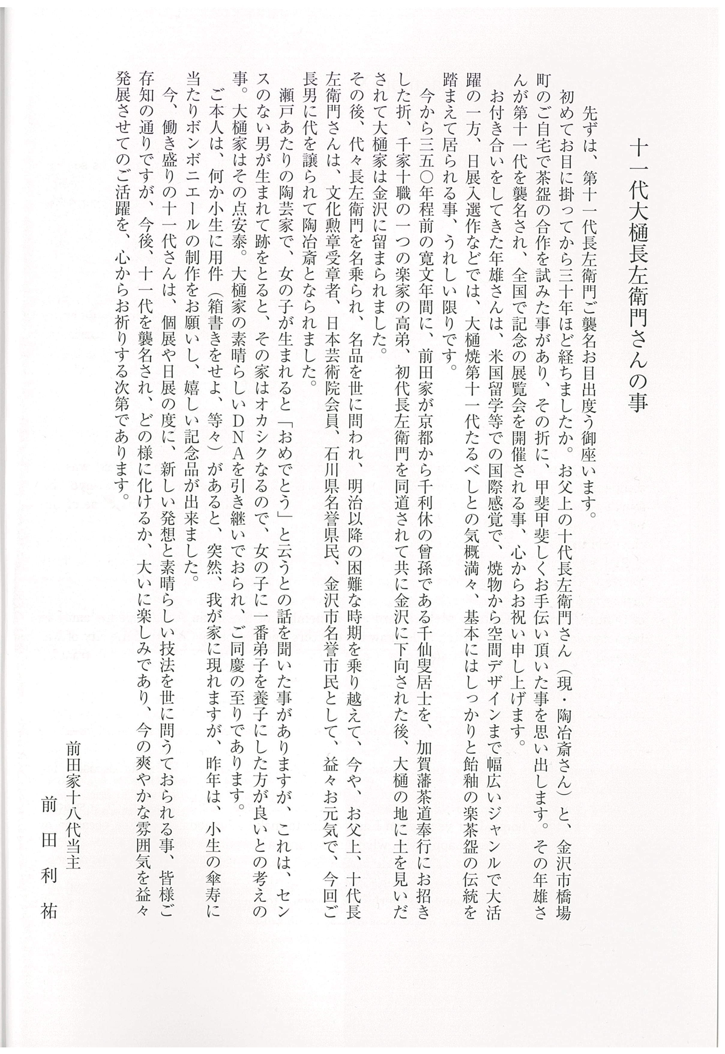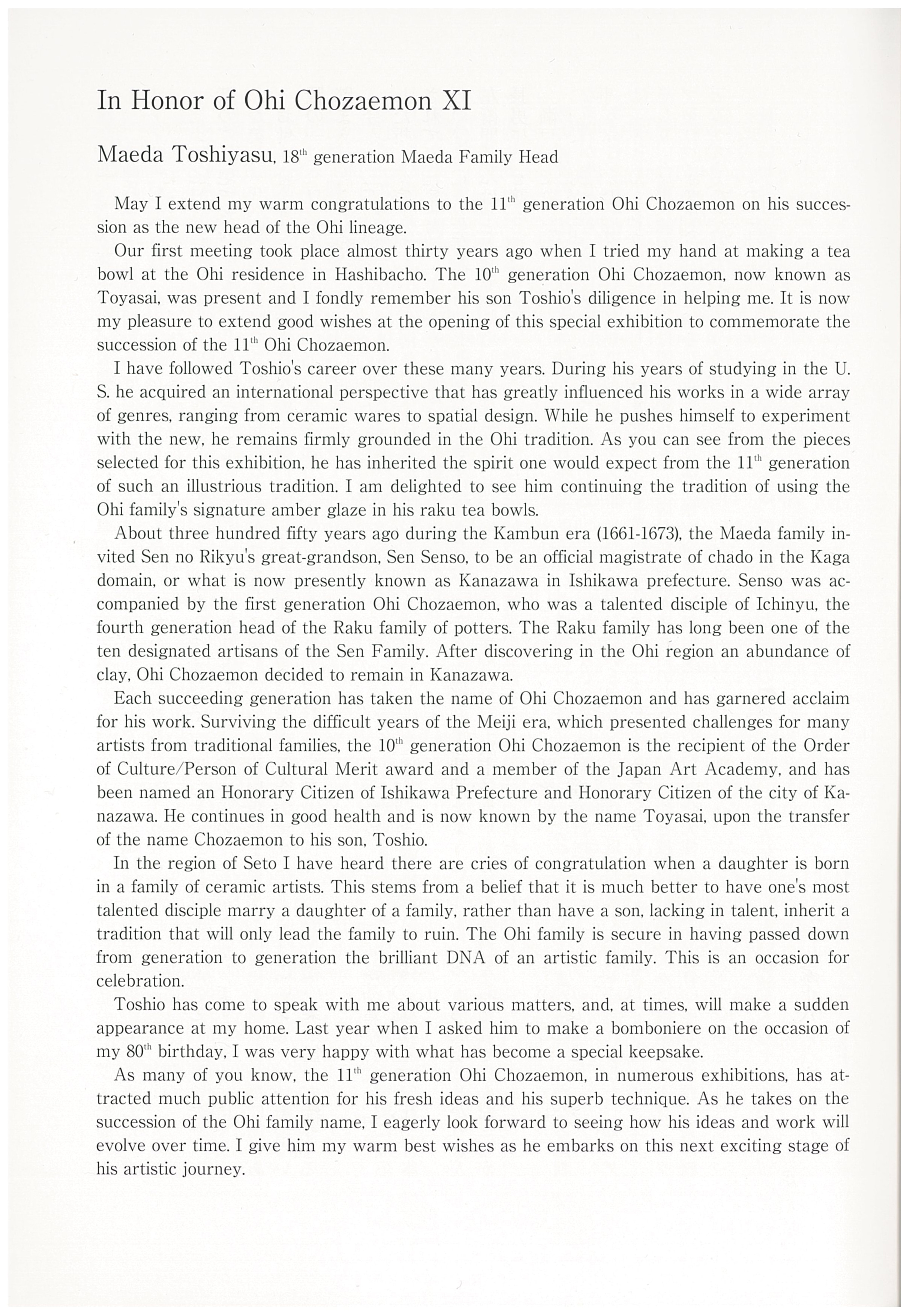 高島屋大阪店 前田家 前田利祐 様 Mr. Maeda Toshiyasu リチャード ハーシュ 様 Mr. Richard Hirsch 秋元雄史 様 Mr. Akimoto Yuji 十一代大樋長衛門 Ohi Chozaemon XI ページトップへ