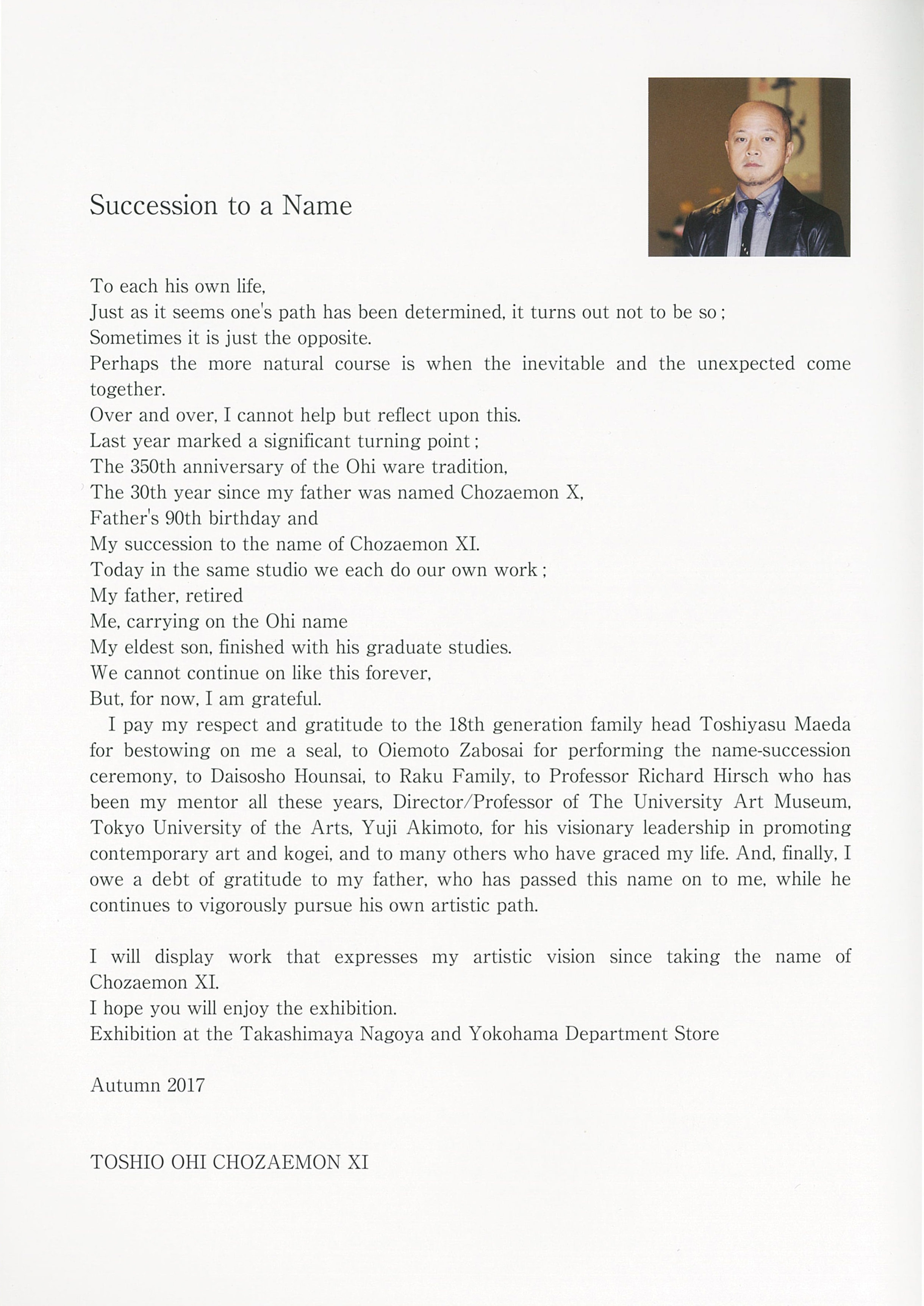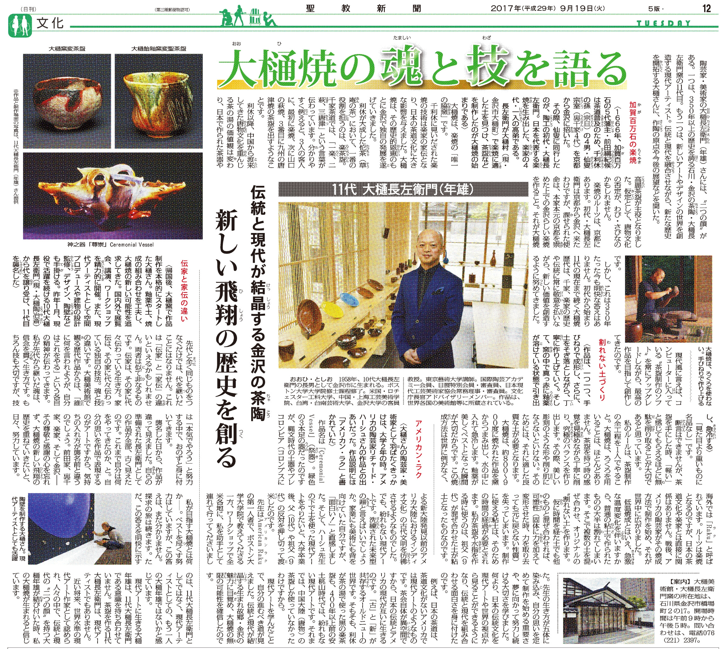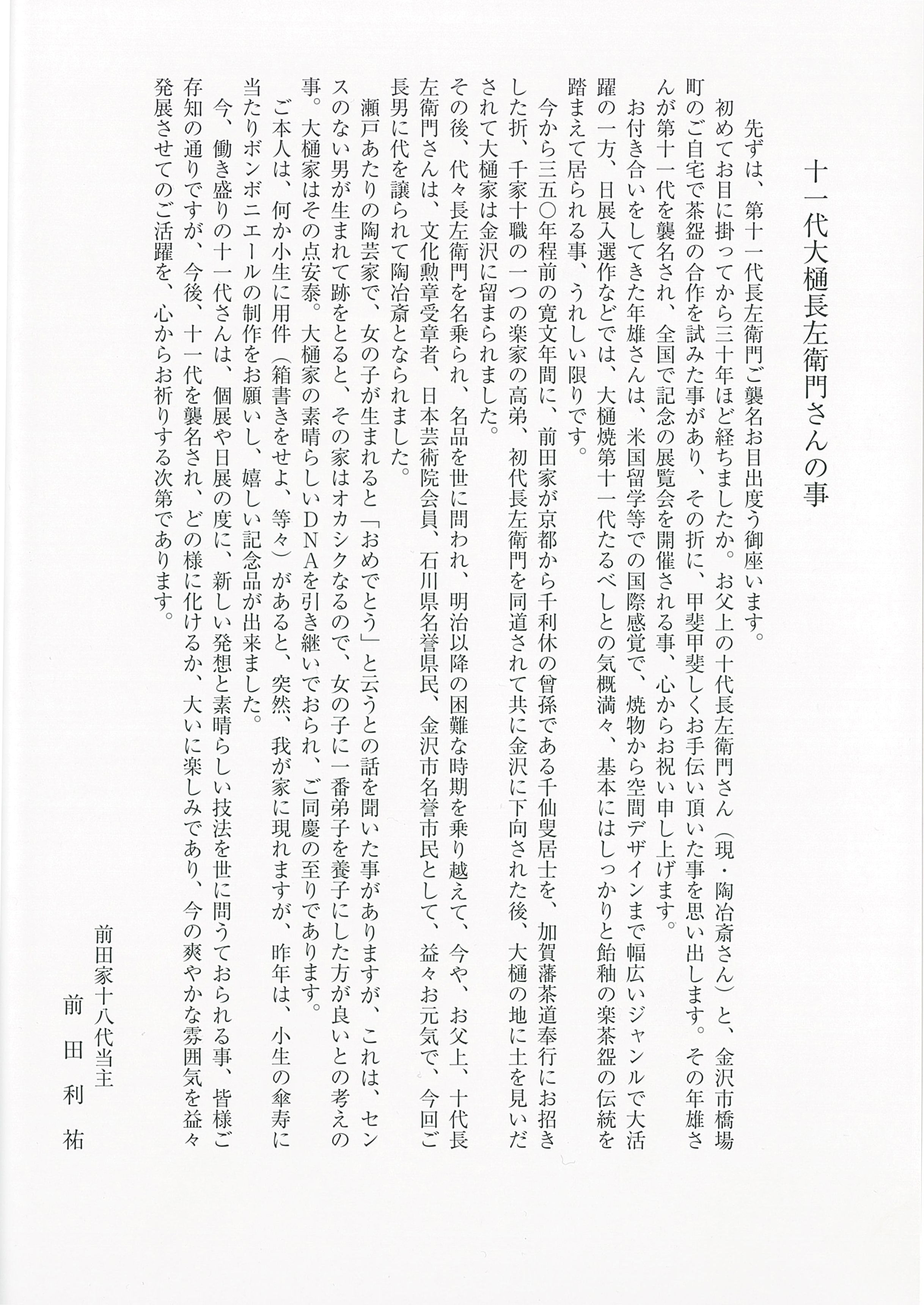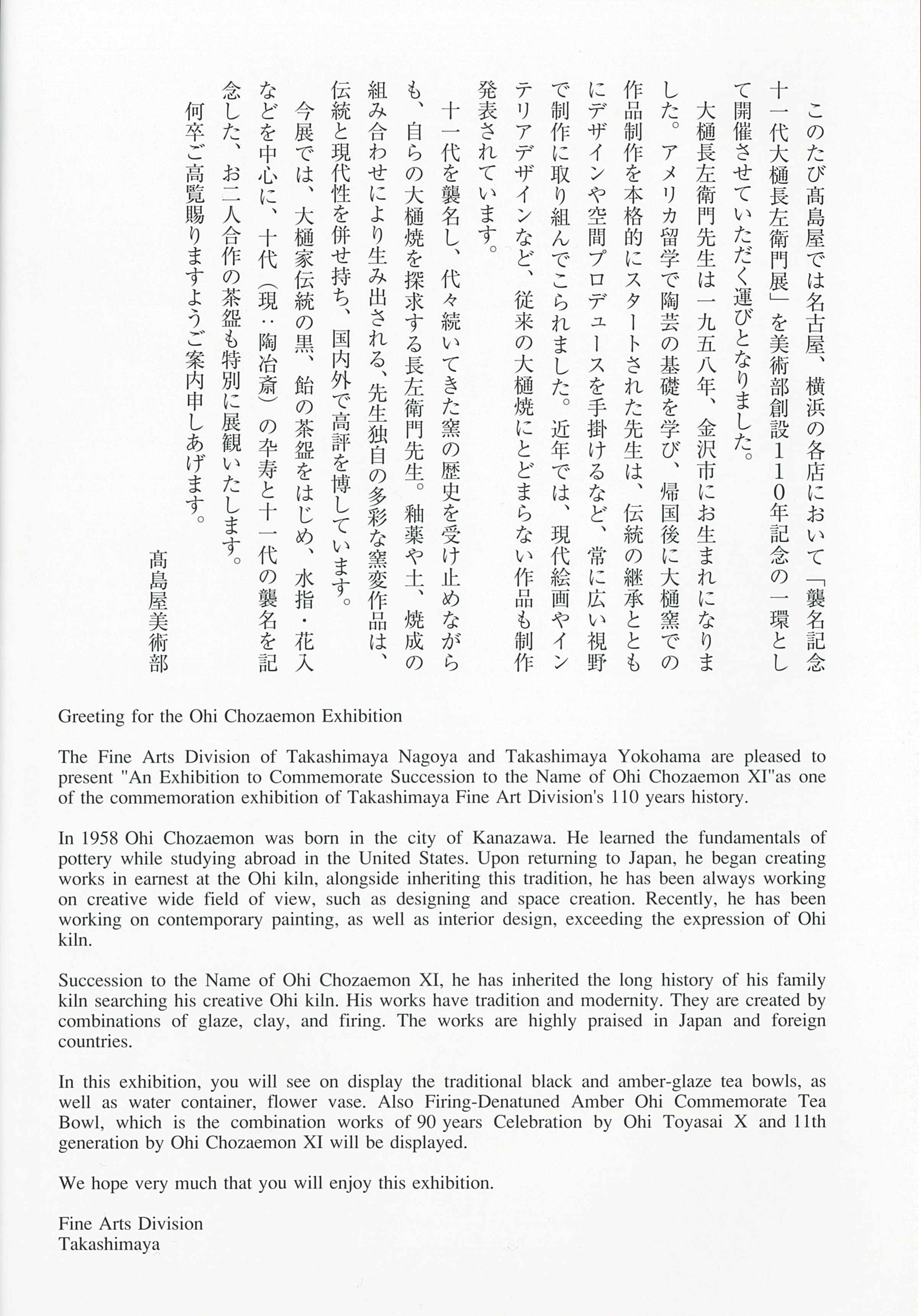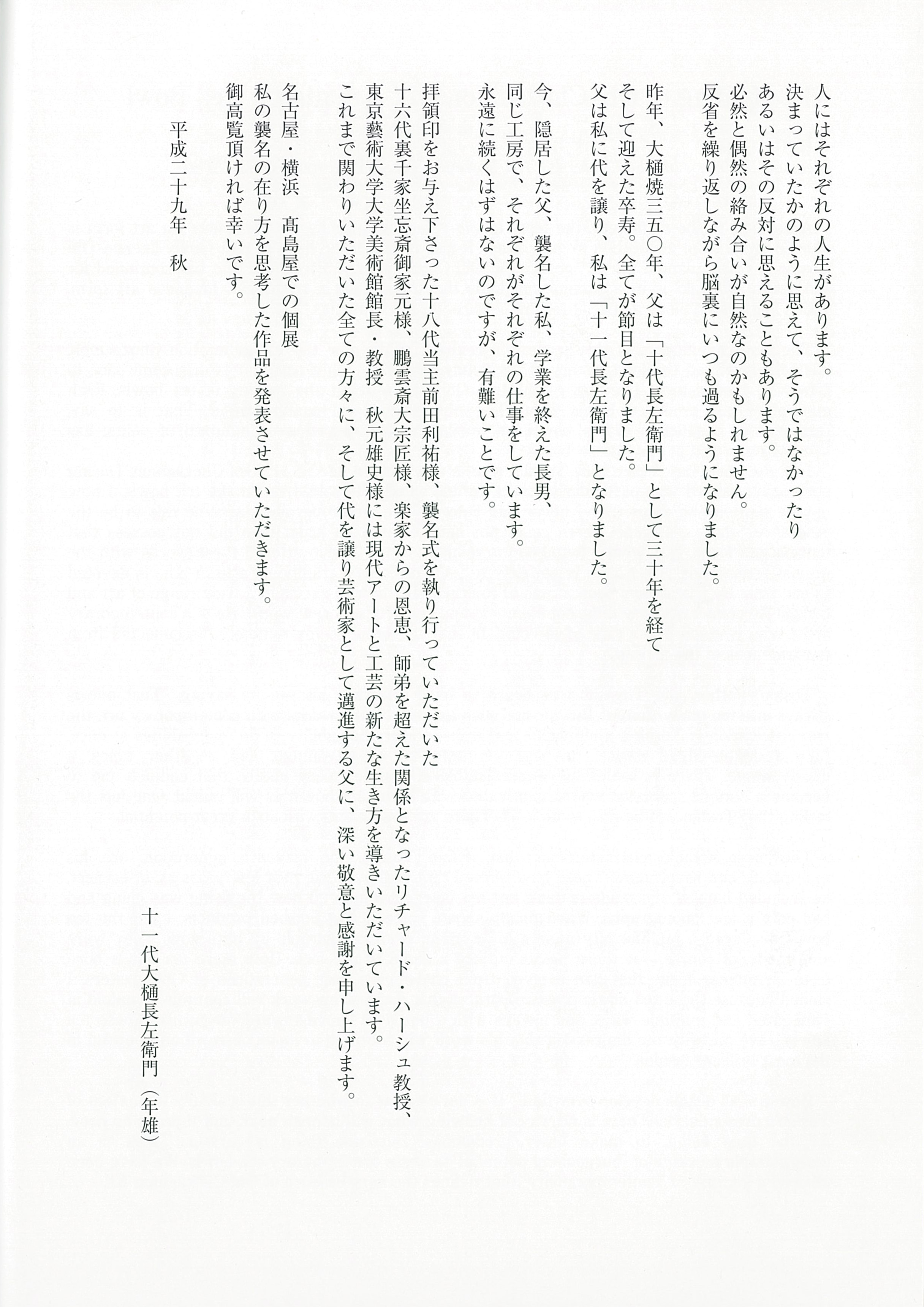 高島屋名古屋・横浜店 前田家 前田利祐 様 Mr. Maeda Toshiyasu 秋元雄史 様 Mr. Akimoto Yuji 十一代大樋長左衛門 Ohi Chozaemon XI ■JR名古屋高島屋 2017.09.20 - 2017.09.26 20170919 聖教新聞 ■横浜高島屋 2017.10.25 - 2017.10.31 ページトップへ
