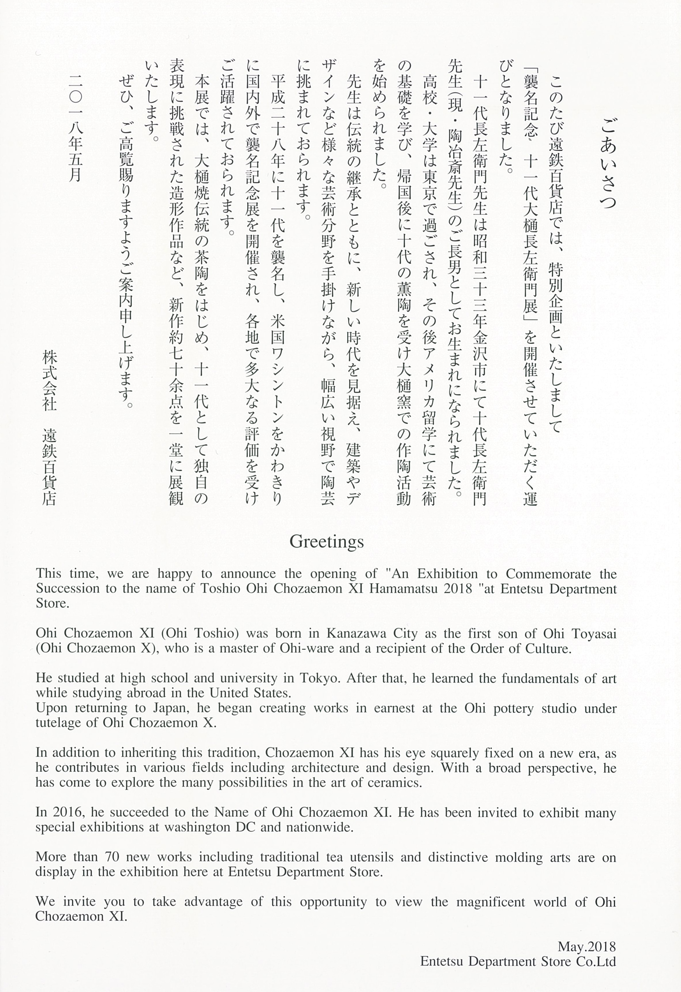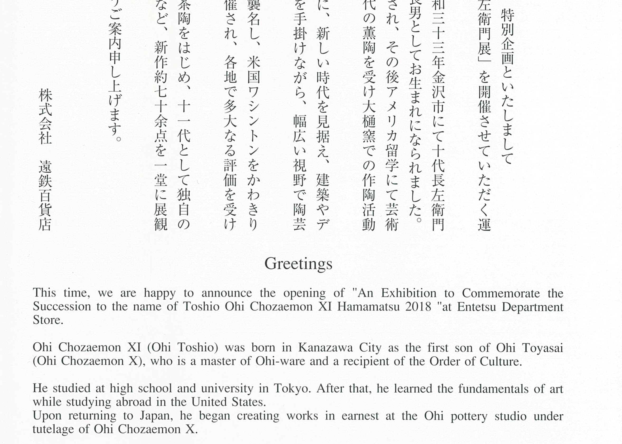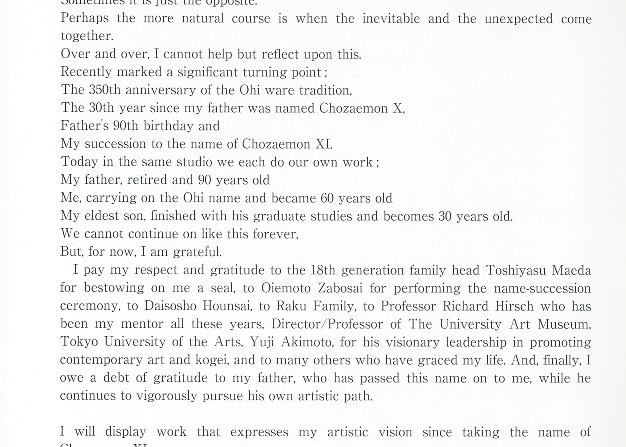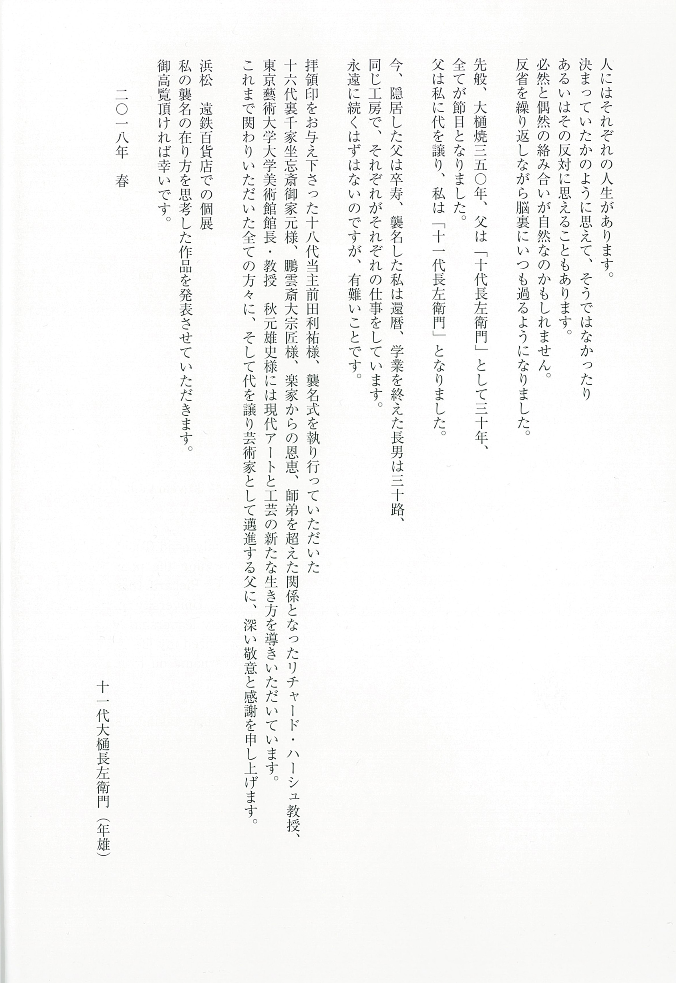 十一代としての独自の表現にも挑戦された渾身の作品の数々を一堂に展観いたします。