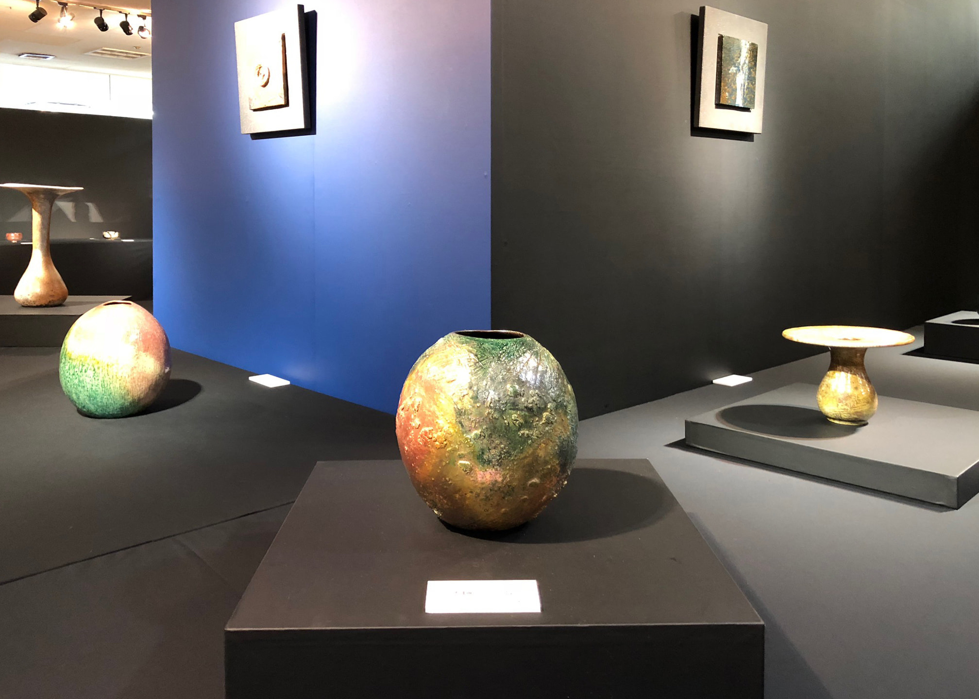 襲名記念となる今展では、大樋家伝統の黒、飴の茶盌をはじめ、