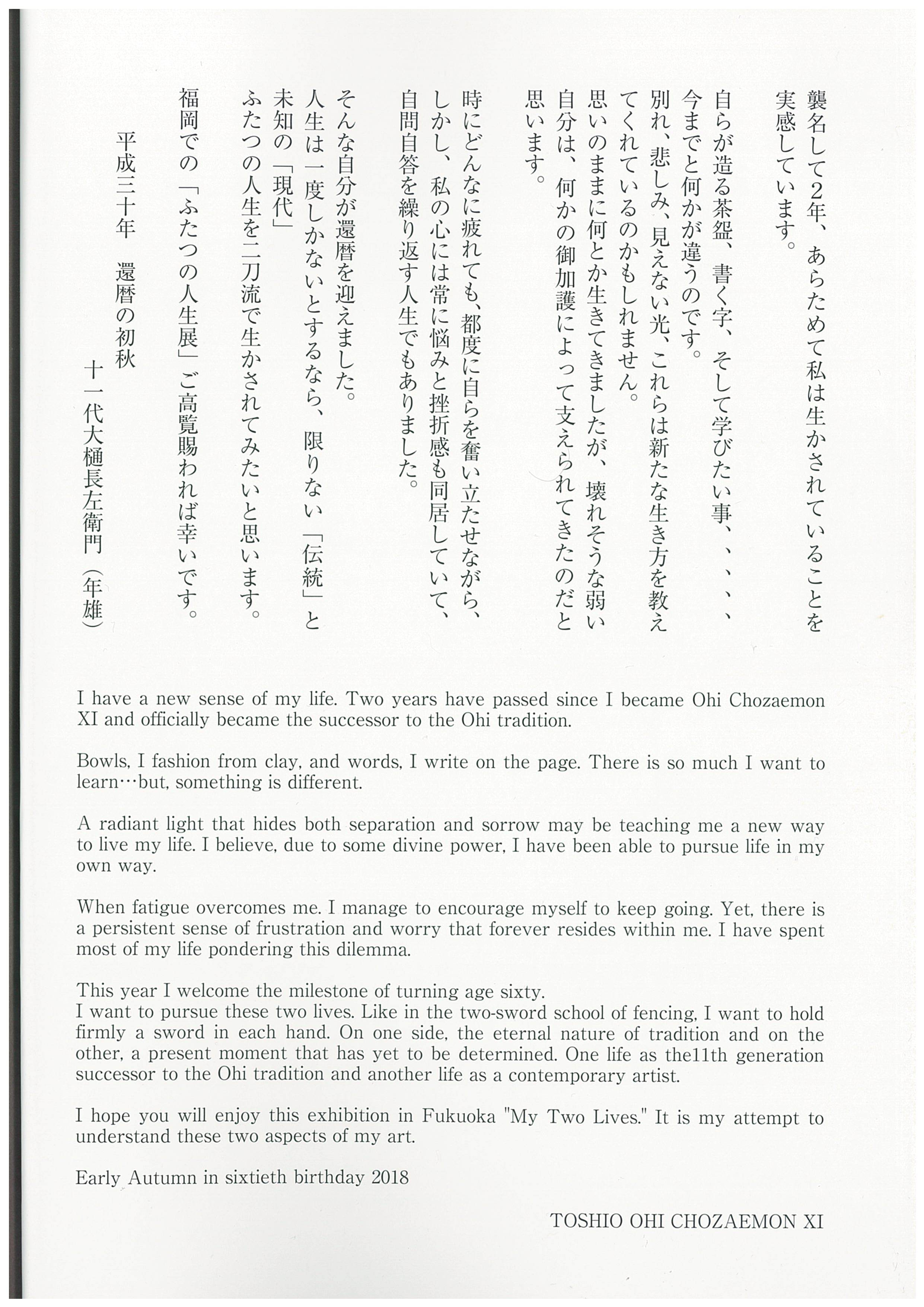十一代としての独自の表現にも挑戦された渾身の作品の数々を一堂に展観いたします。