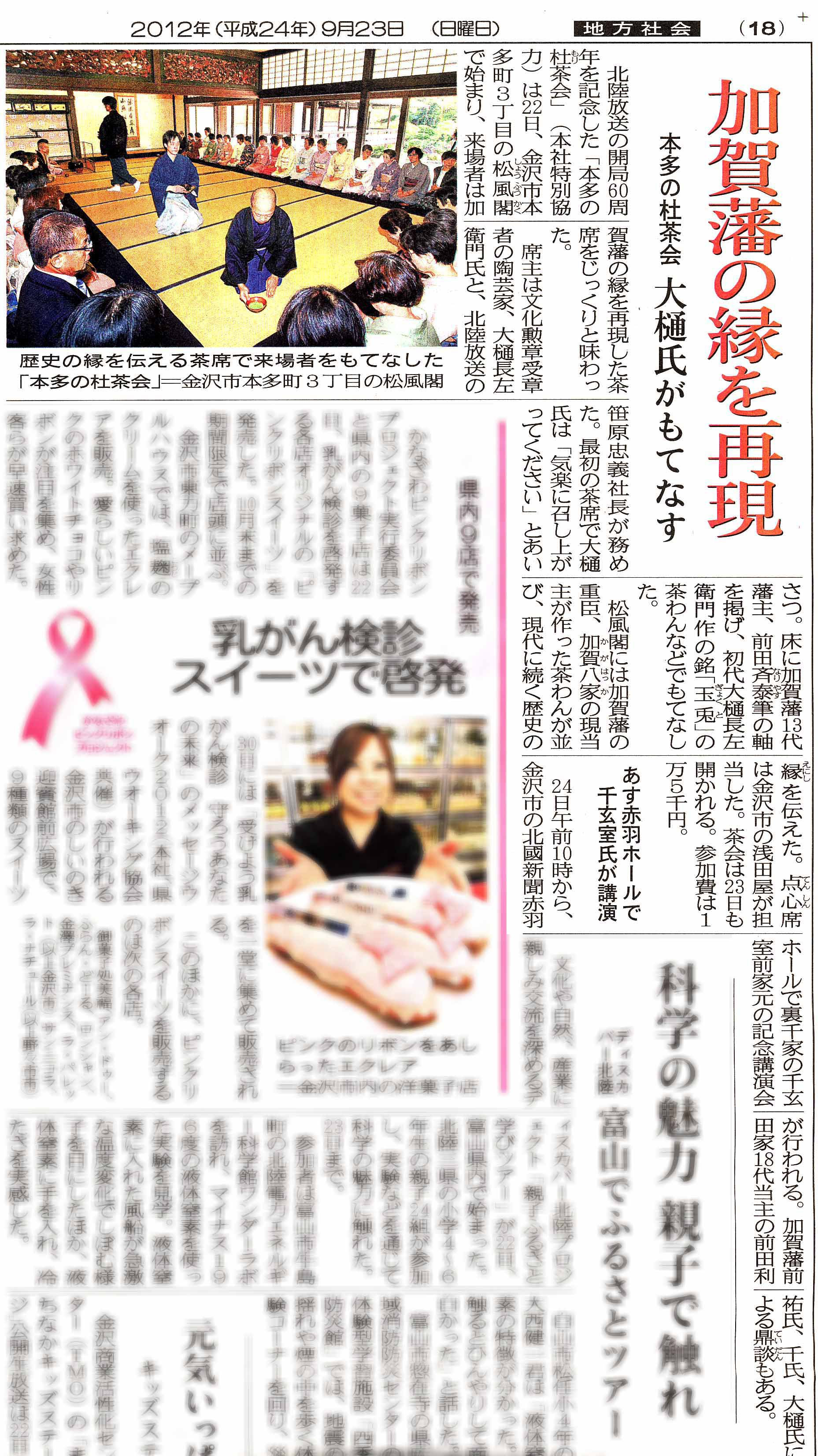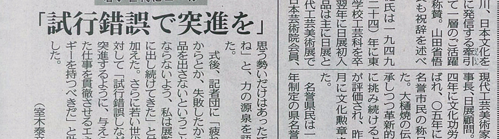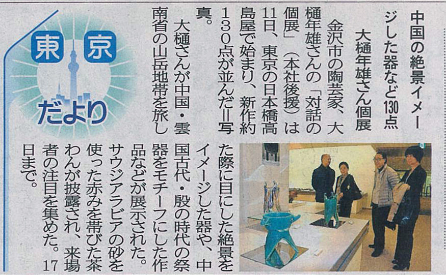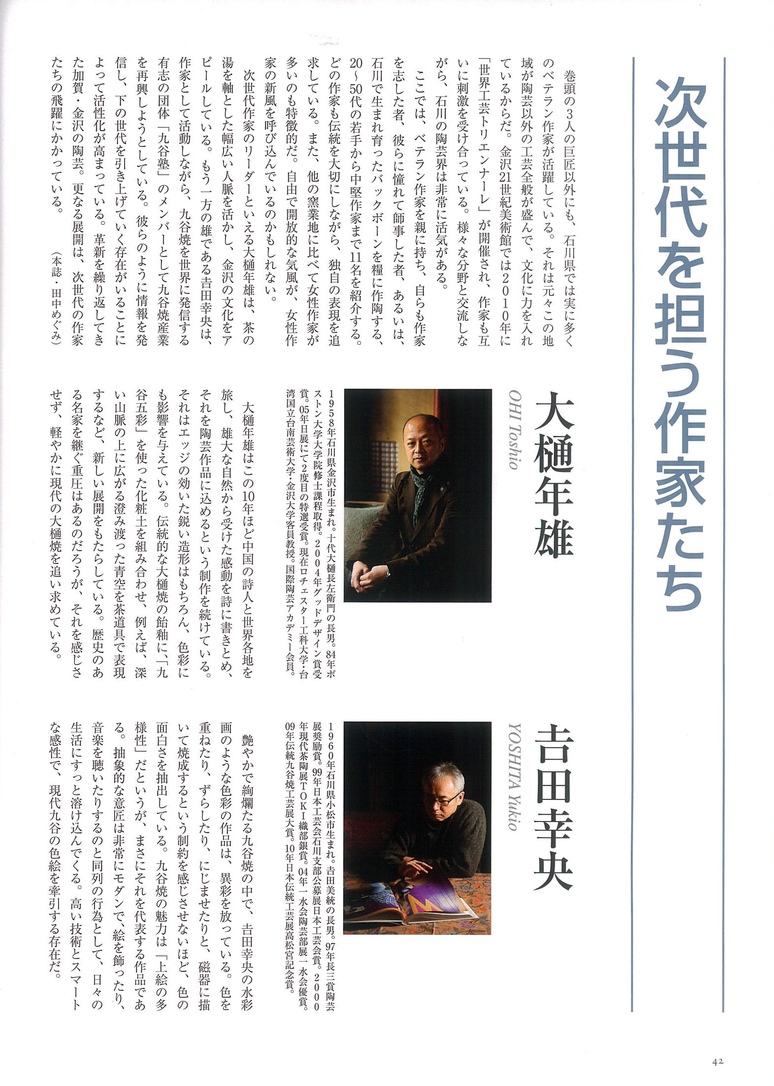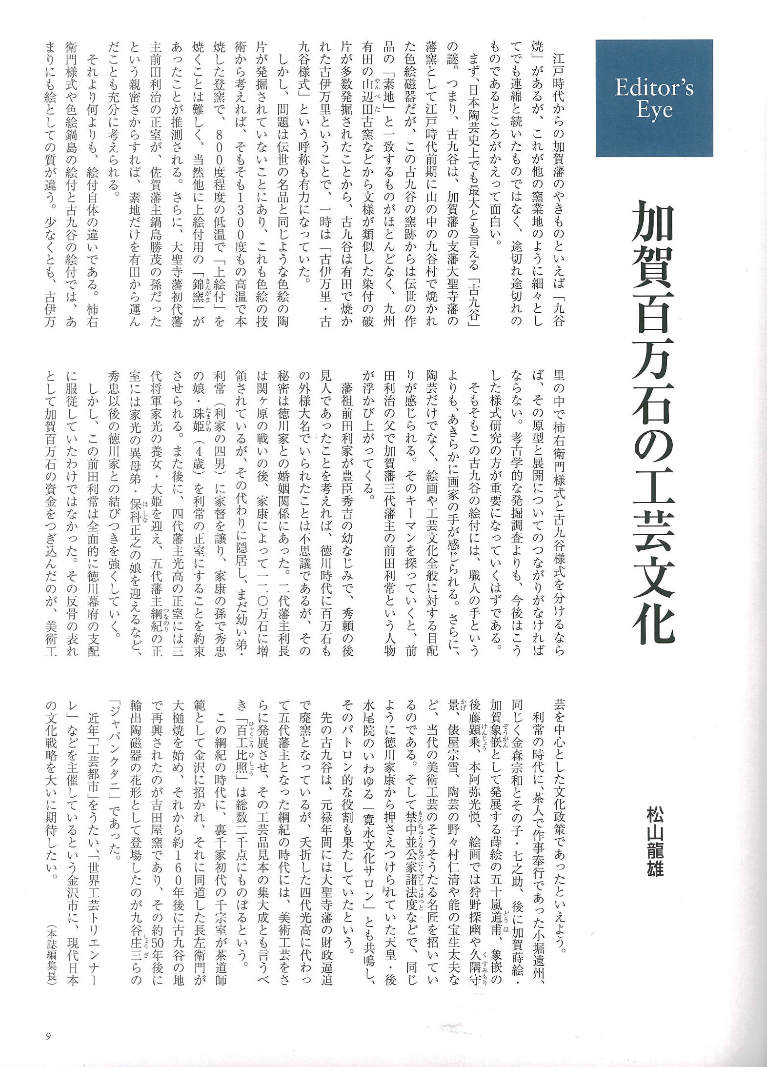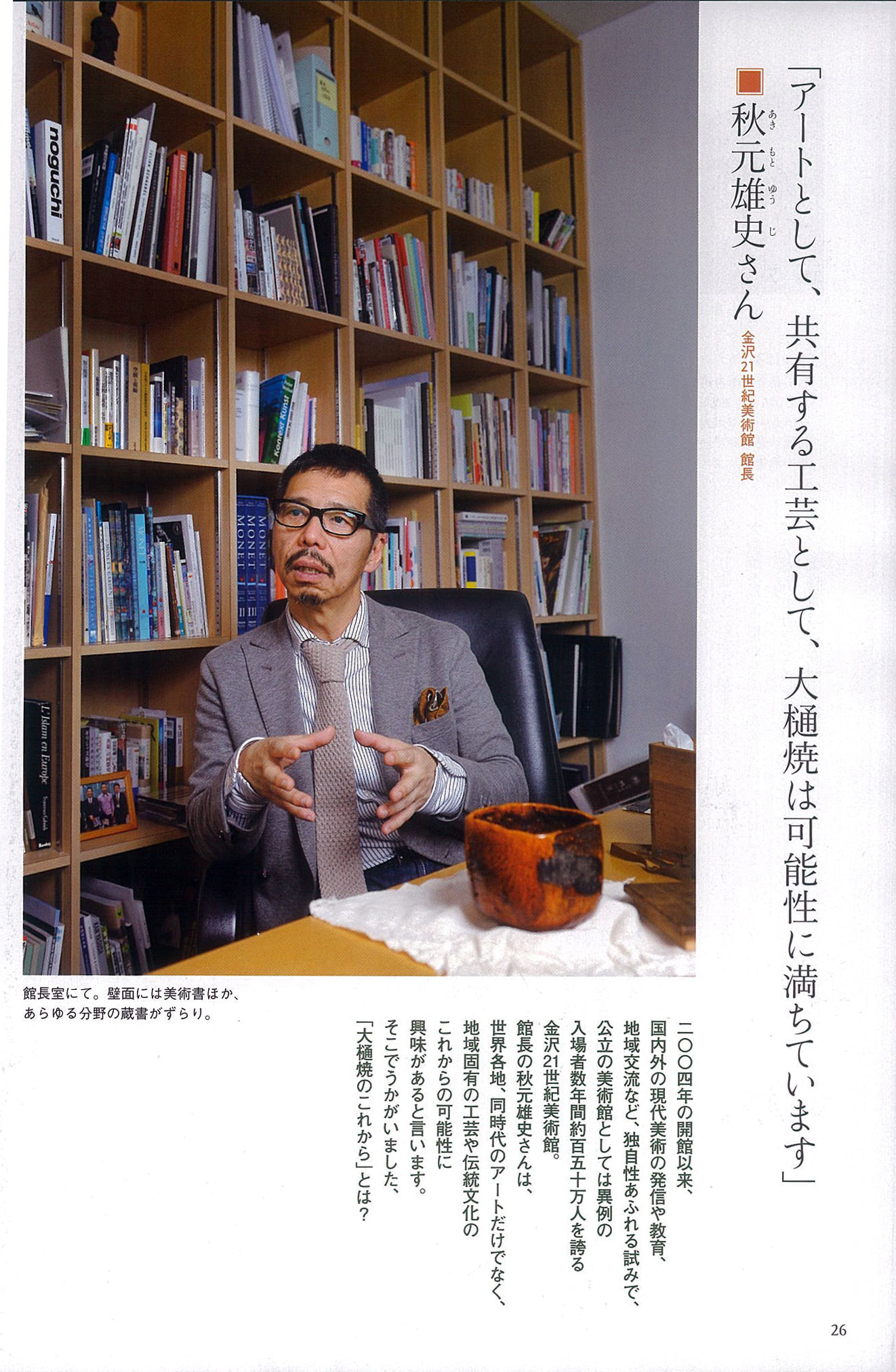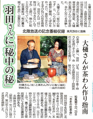 寛文6年(1666年)に加賀藩5代前田綱紀候のもとに茶道茶具奉行として、裏千家4代仙叟宗室居士が初代大樋長左衛門を同道させて金沢の地に楽焼の技法を伝えることとなり、仙叟好みなど飴釉を中心とした造形美あふれる作品を残し、その作風は昨年文化勲章を受章した10代長左衛門まで脈々と受け継がれております。本年は初代長左衛門没後300年にあたり石川県指定文化財「飴釉海老摘手付水指」、「黒飴釉烏香炉」「飴釉茶碗 銘 聖」などの初代の代表的な作品や、「仙叟手造り飴釉瓢形茶入」、また大樋歴代そして大樋家とのゆかりの方々の作品、また同時に収蔵から選んだ12カ月茶碗の優品などを陳列いたします。