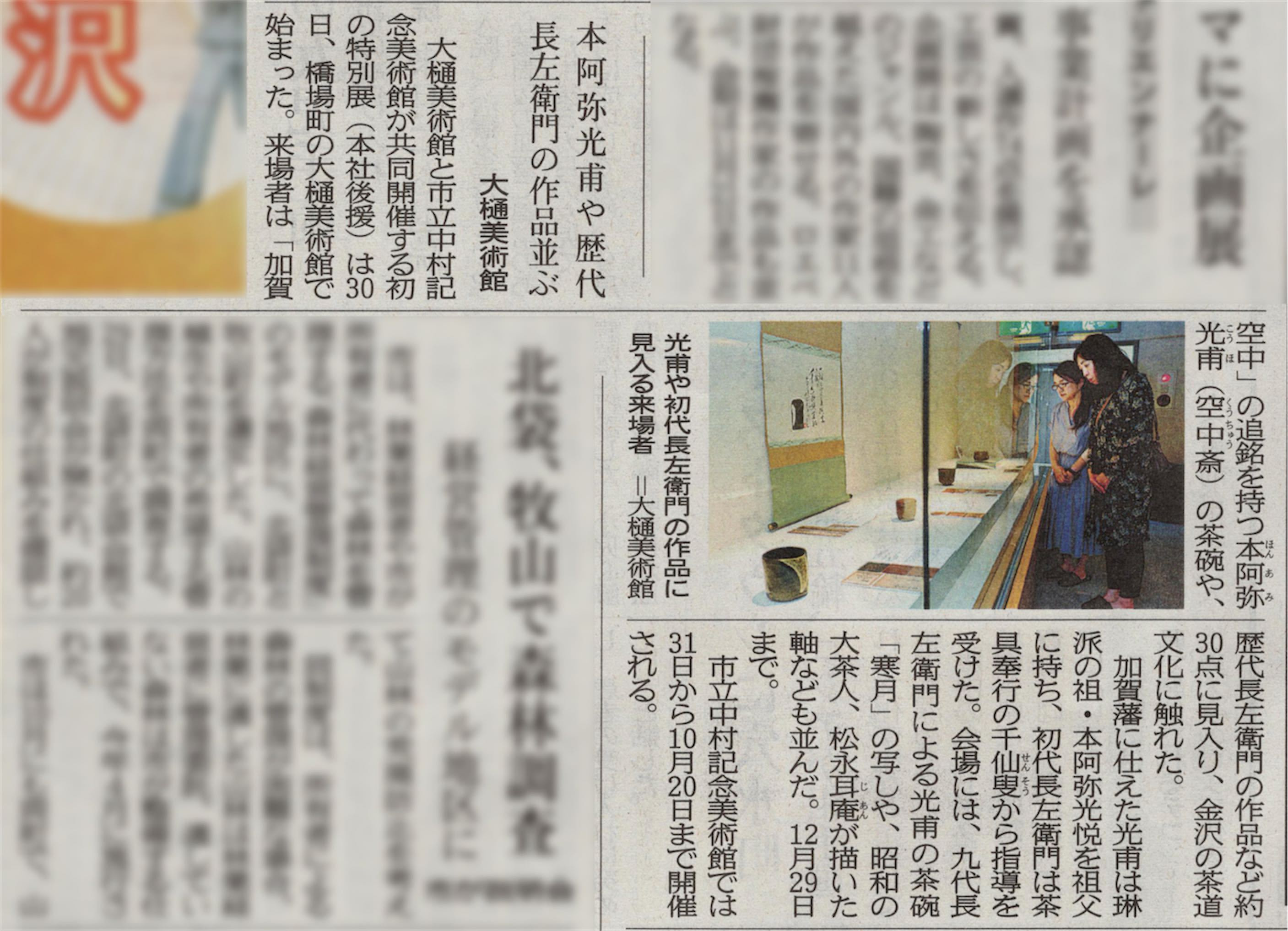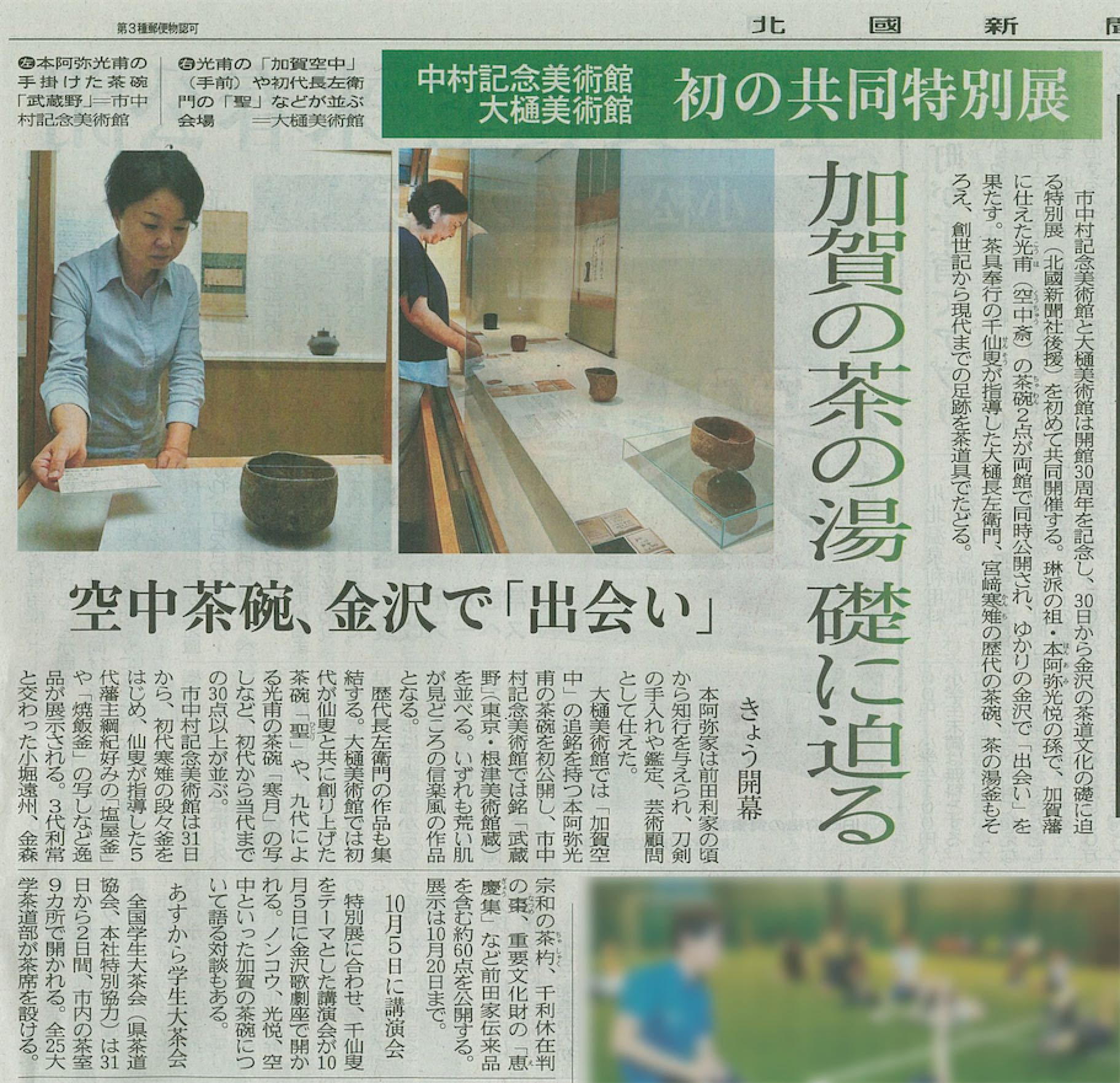 One of important topics are two of Honami Koho-Kucyu tea bowls are able to meet in Kanazawa.