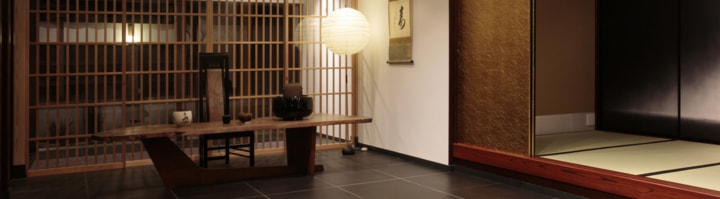 「茶室•年々庵」(建築家•隈研吾氏設計/裏千家十五代鵬雲斎家元命名/日本画家 千住博氏襖絵制作)